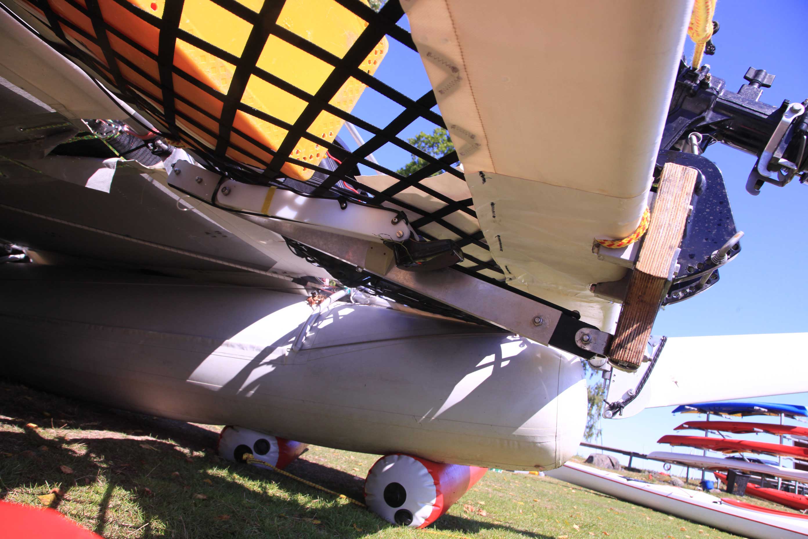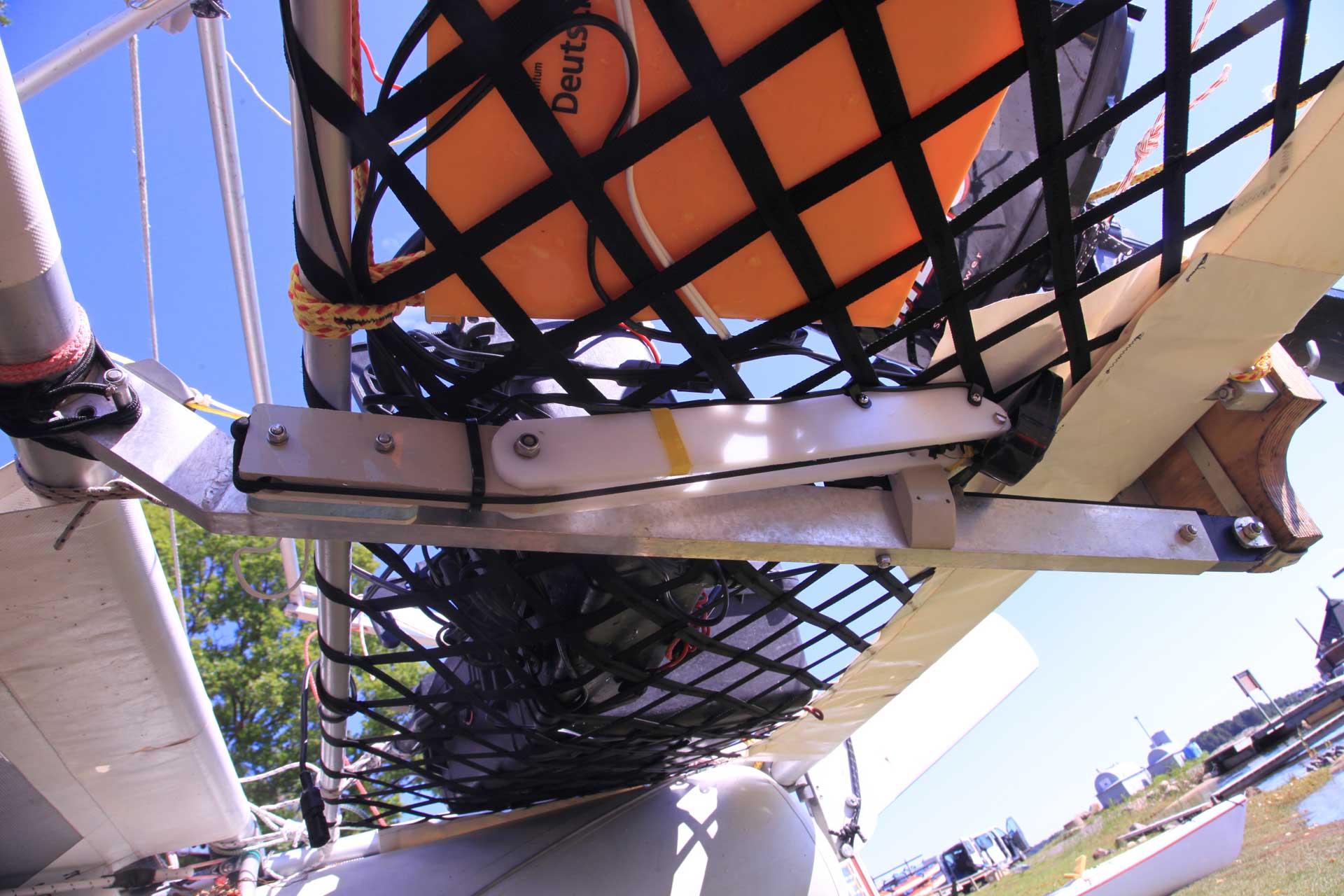 Перенес сонар на торец транца с возможностью откидываться назад при наезде на препятствие.