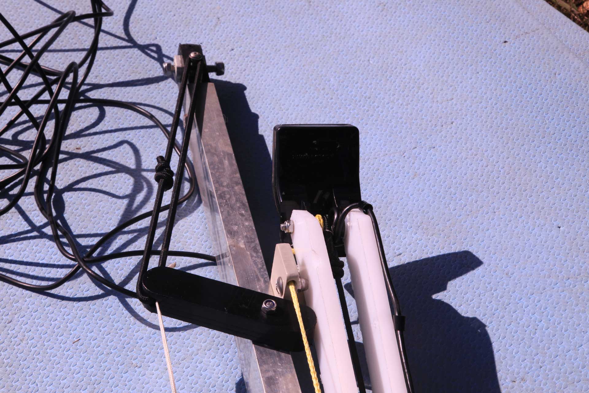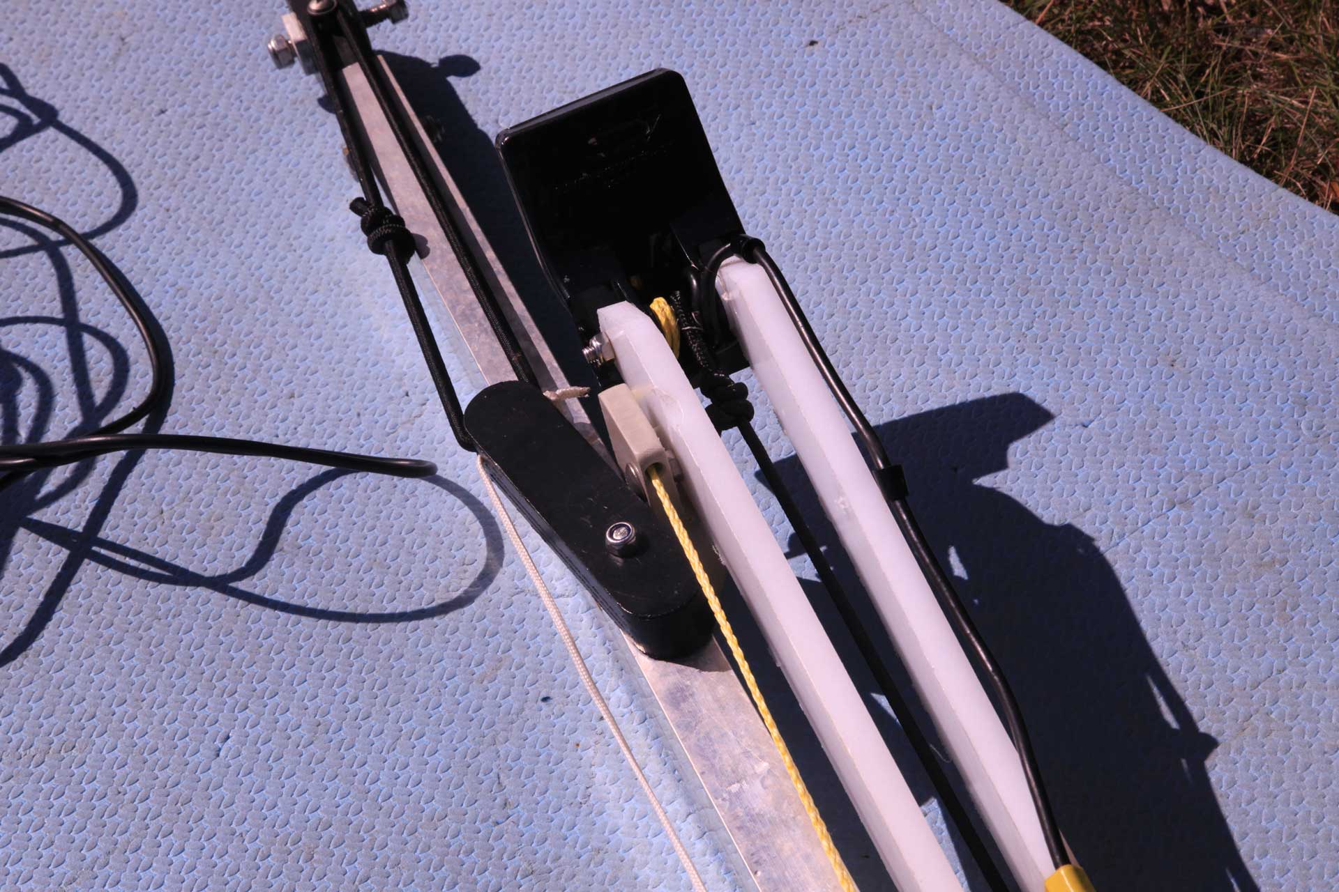 Долго думал, как установить датчик. Требования были - защищённое от повреждений место при выбрасывании на берег или прохождения мелей и быстрый(простой) подъём - опускание.