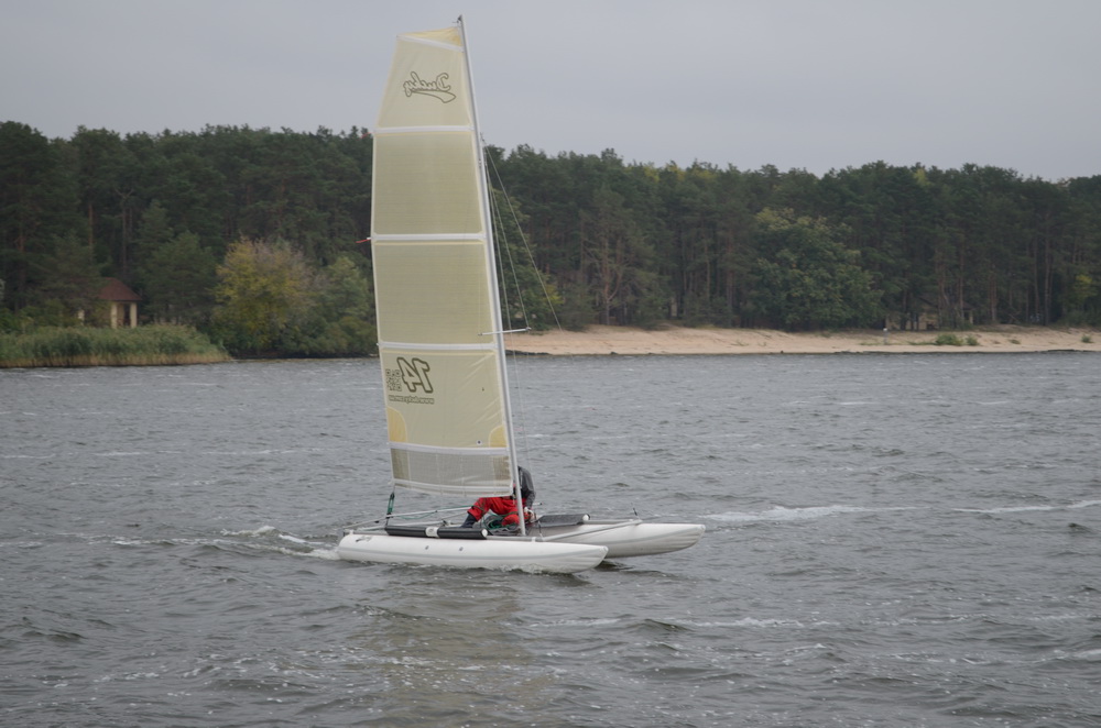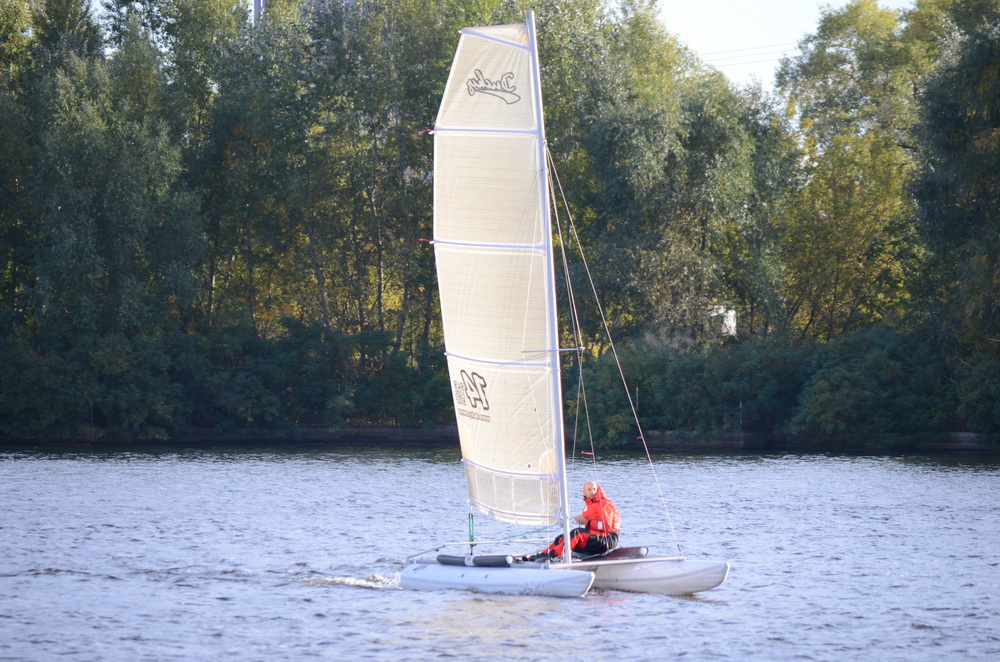 По прогнозу было около 7 м/с, в порывах до 10 м/с. Лодка реально резвая и в свежий ветер проявляет свой спортивный характер.