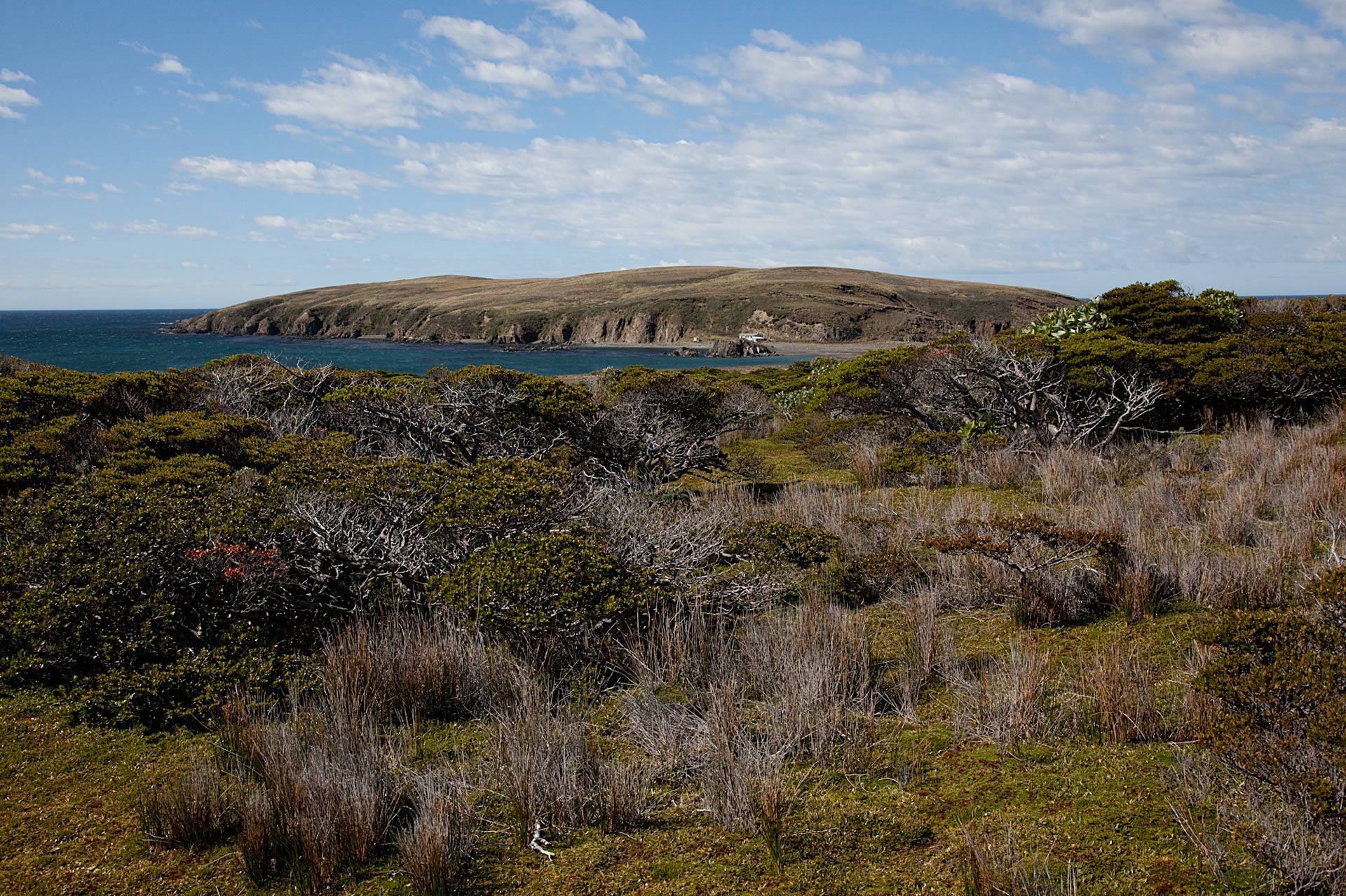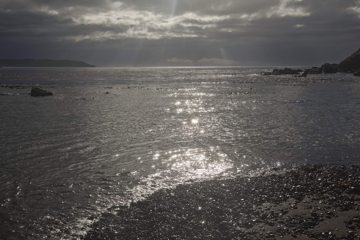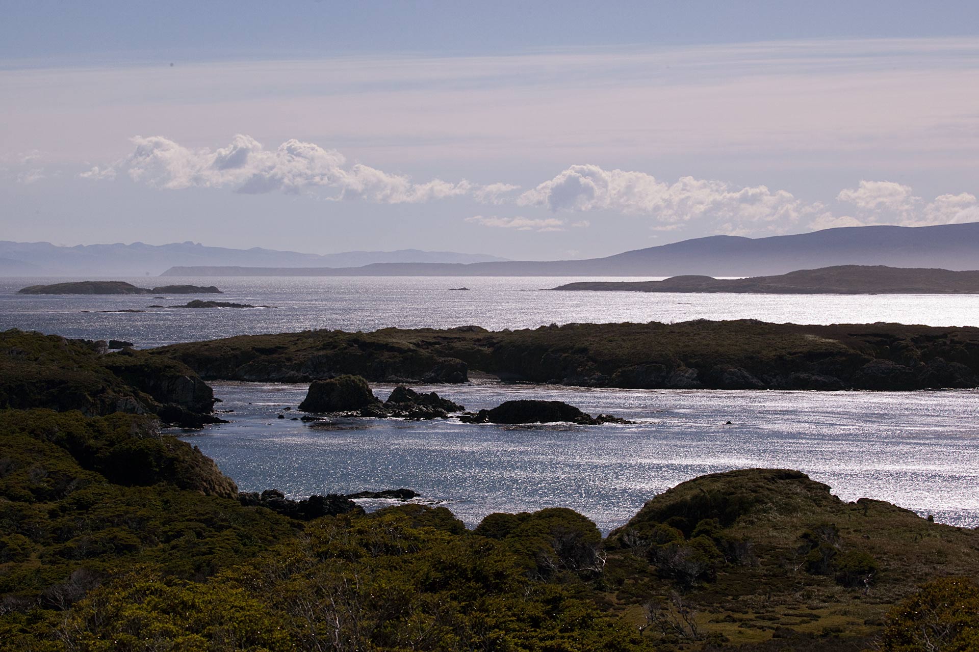 Было обидно, что мы не встали раньше и потеряли большой промежуток очень тихой погоды, за что вечером мы были наказаны. Катамаран продвигался вдоль берега на моторе. С гор на острове часто задувал ветер. Было холодно. Часа через полтора я замёрз и с ужасом думал о том, что пролив нам предстоит пересекать не меньше 6ти часов. По пути мы заехали посмотреть на поющие пещеры, которые я описывал в начале. Мы подъехали совсем близко и заглушили мотор. Было видно несколько входов в пещеру, дальше она представляла собой большой зал, в котором лежали морские котики или тюлени. Это они издавала эти воющие и ревущие звуки, а пещера их усиливала. Посмотрев немного, мы пошли дальше. Очень скоро мы вышли из-за острова, дальше предстояло идти около 40 км по открытому морю. Выйдя из-за острова, ветер изменился и стал дуть слабее и почти нам в спину. Подняв паруса, мы прибавили в скорости и на себе перестали чувствовать ветер. Волна была небольшая, временами выходило солнце. Стало теплее и веселее. Впереди на горизонте стояли тучи. Видно было, что из них идёт дождь. Мы понимали, что через какое-то время мы с ними встретимся и попадём под дождь, возможно, будет изменение ветра. Проехав примерно 2/3 пролива, мы попали под проливной дождь, видимость пропала, но солнце пробивалось сквозь тучи и подсвечивало море. Это длилось около нескольких минут, но цвета были невероятные. В то время мы проходили мимо небольшого островка, и когда его осветило солнце, то зрелище было совсем невероятное. На ближнем фоне мы видим воду, дальше оранжевый свет и над ним остров. Это была такая радуга. Дождь закончился, мы быстро продвигались к нашей стоянке. До конца пути оставалось около часа. Ветер стал усиливаться, волна росла. До острова оставалось около 1 км. Волна выросла, некоторые доходили до 2х метров в высоту. Ветер начал свистеть в фалах, появилось много пенных гребешков. Это начинался шторм. Мы уже шли вдоль острова Ленокс на расстоянии около 500-700 м,но подойти ближе и остановиться было негде. Нужно было идти до намеченной бухты. Становилось все страшней и страшней. Так мы шли вдоль острова около получаса. Впереди показалась нужная нам бухта, но заход в неё был непростой. На входе в неё было несколько камней, на которые обрушивались волны. Наш катамаран удачно проехал между камней, но водоросли мы зацепили. Слава Богу, они нам не доставили проблем, мотор не заглох, мы вошли под прикрытие бухты, здесь море было явно спокойней. Впереди на берегу мы увидели домик краболовов и хороший галечный пляж. Причалив, мы осмотрели домик и решили здесь остановиться. День был тяжелый, в этот день мы перебрались с архипелага Горн на остров Ленокс, преодолев пролив Нассау, около 40 км открытого океана, а под конец попали в начинающийся шторм. Все очень устали и за ужином решили, что следующий день будет днёвка.