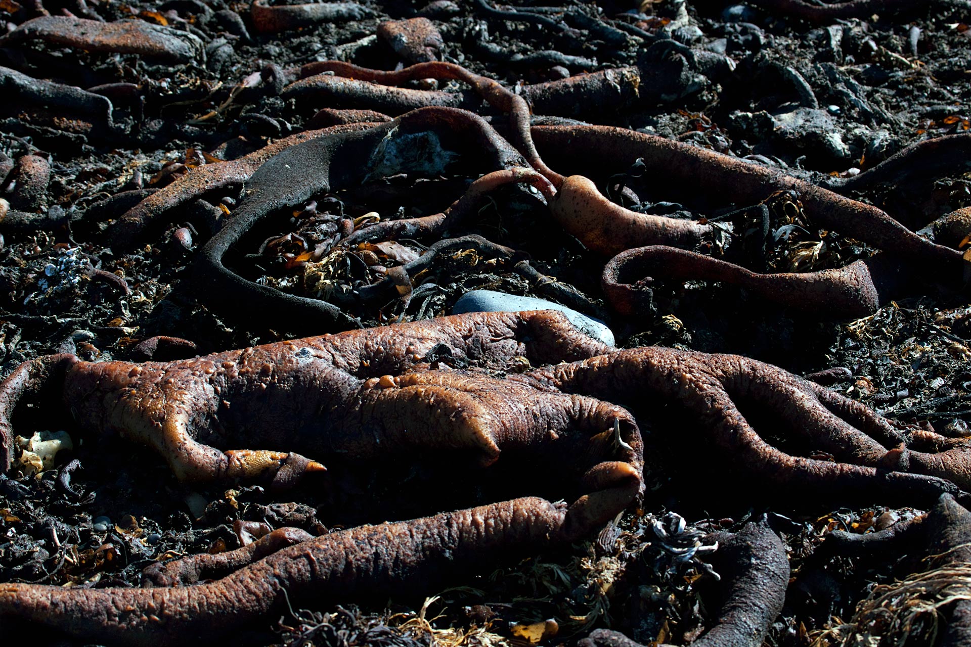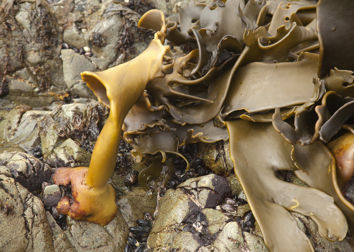 Обратите внимание на размер основания водоросли (по сравнению с размером мидий), сантиметров 15-20, отодрать от камней невозможно, даже с помощью ножа.