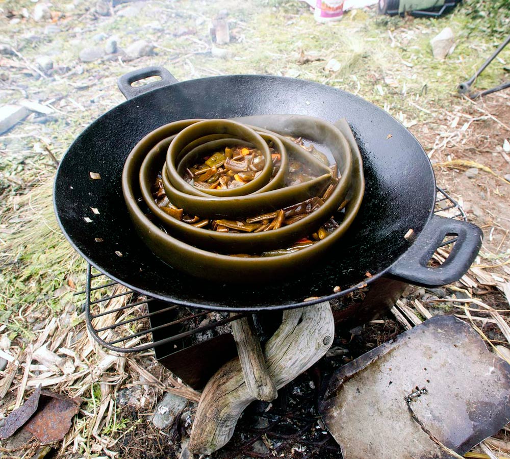 Мы долго готовили завтрак, затем пекли хлеб. При сильном ветре, частом дожде и плохих дровах это занятие очень долгое и нудное. Гулять мы никуда не ходили, подняться чуть выше в горы было опасно, могло сбить ветром и вообще, находиться на таком ветре долго тяжело. За ужином был смешной случай. Я набрал ложку супа, нёс ко рту, в этот момент ветер выдул из ложки кусок цветной капусты. Легли мы рано.