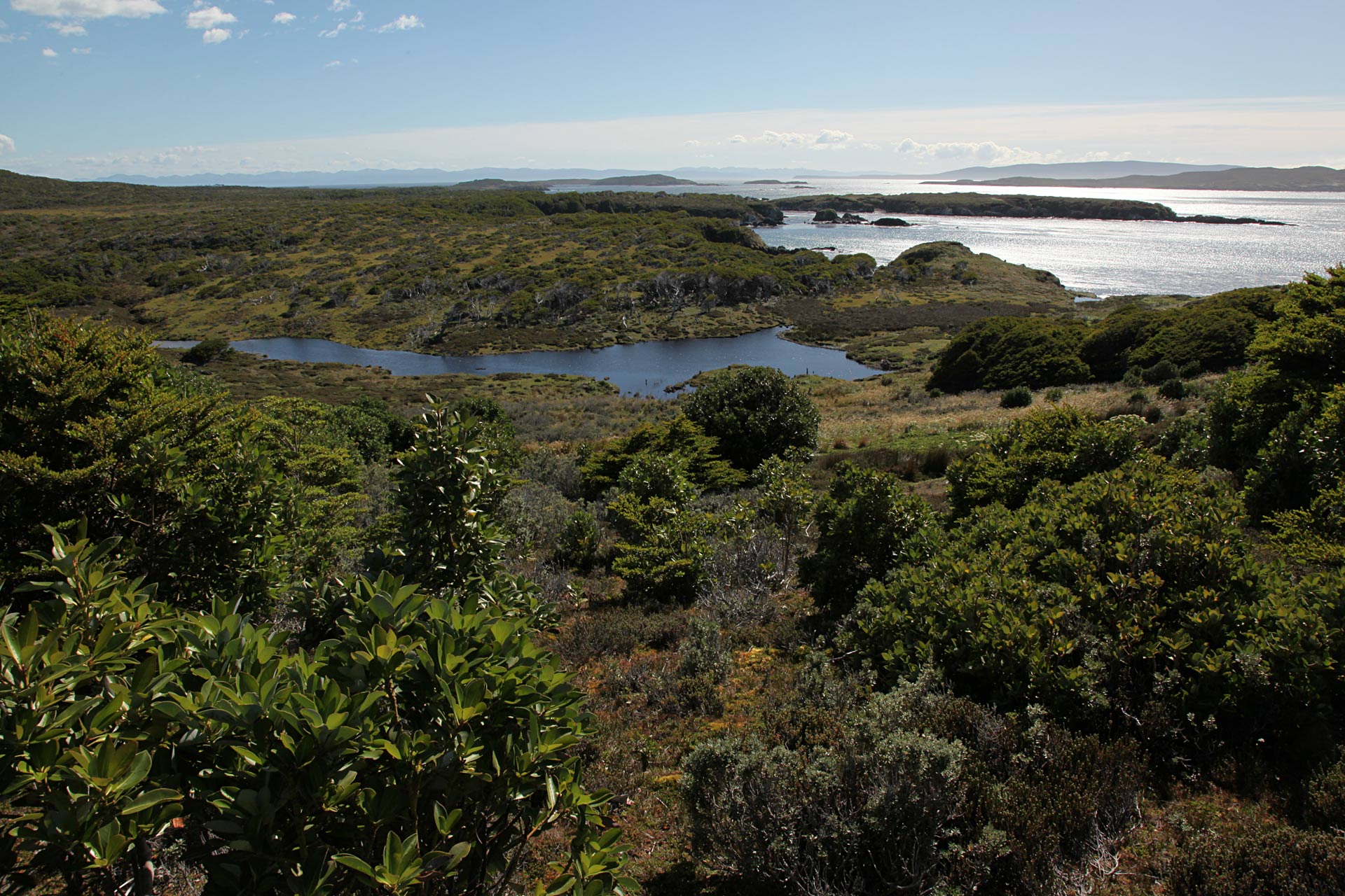 Мыс соединяется с островом низким перешейком. Поверхность перешейка почему-то напомнила мне фотографии с Марса. Такая же безжизненная каменистая, рыжевато-коричневая пустыня. Ветер выдул всё.