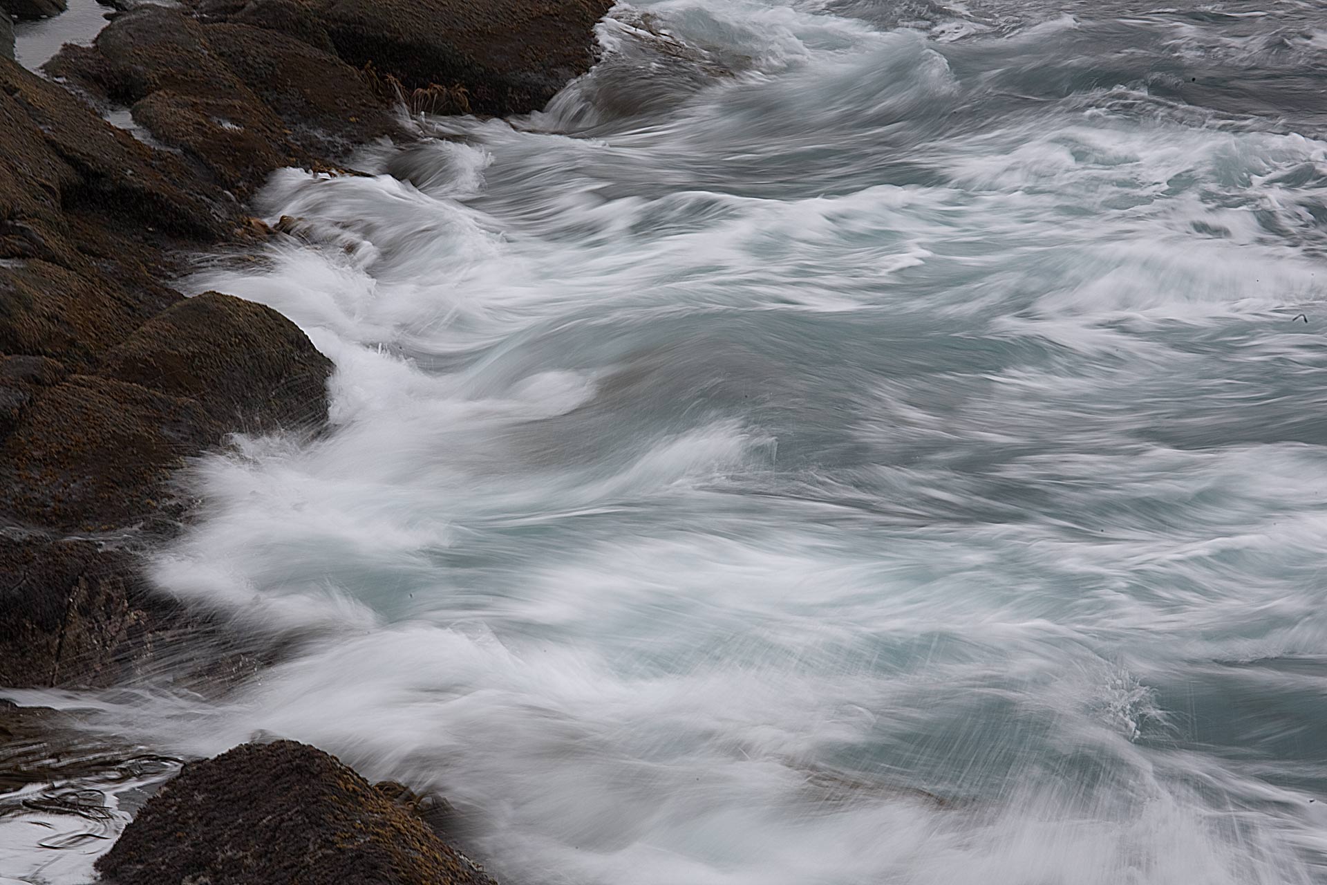 Сначала идем от домика к океану. Да, это уже не проливы и бухты, а открытое море-окиян. Он живет своей жизнью.Валы полого накатываются на скалы вздымаясь вверх фонтанами брызг. Иногда доносятся странные звуки которые издаёт воздух зажатый волнами в прибрежных гротах. И крики птиц. Красиво и сурово до невозможности.