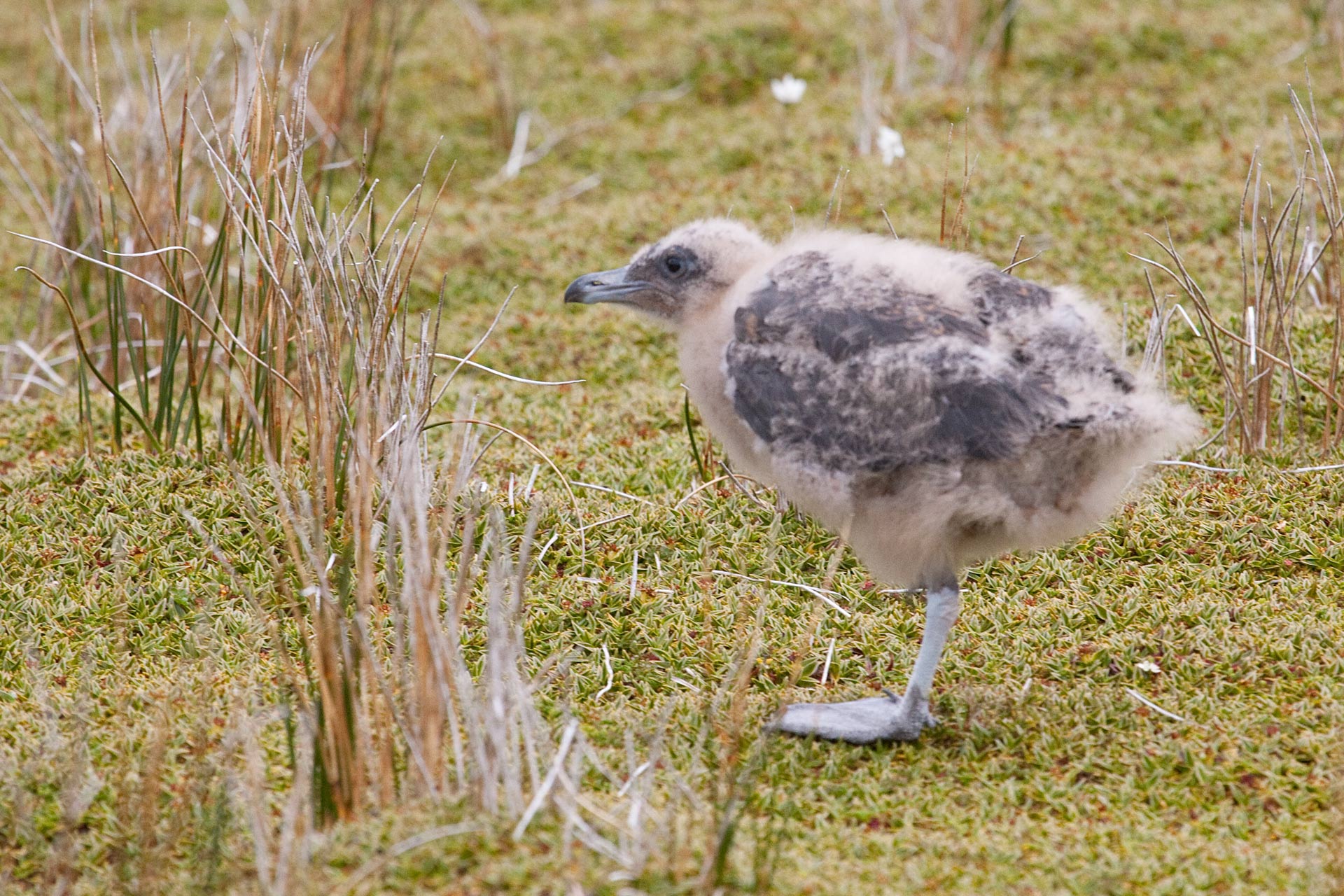По дороге к обрыву замечаем притаившегося птенца чайки. Правда птенчик, такой себе, невроку, размером в мелкую курицу.