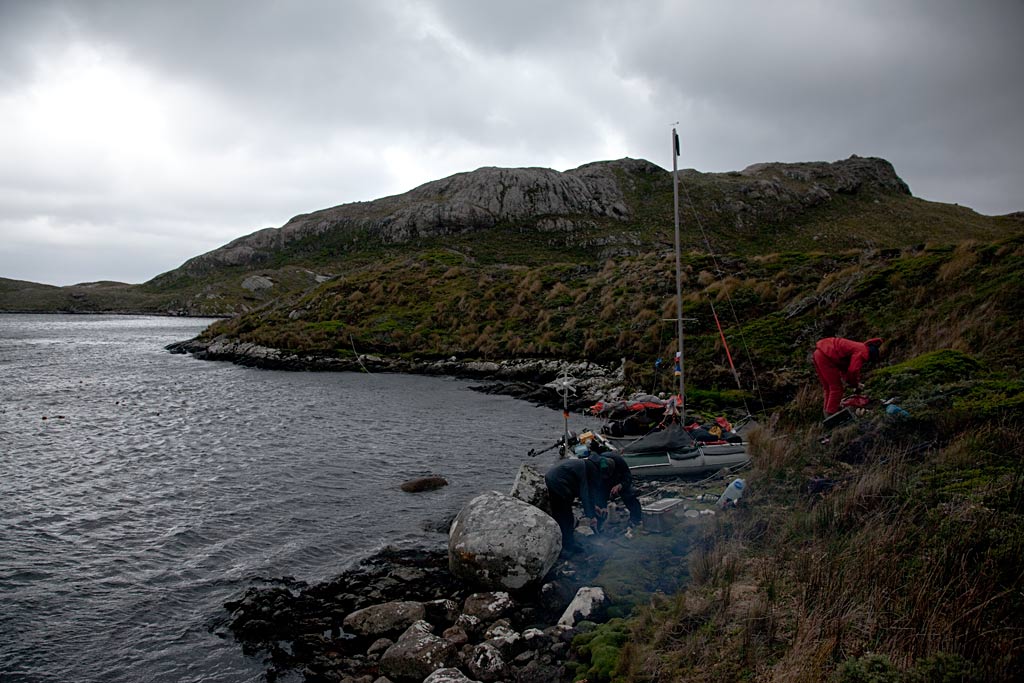 Просыпаюсь от хлюпающих звуков доносящихся снаружи. Высовываю голову из палатки. Сегодня у нас высокий прилив, вода плещется прямо около стенки палатки, но меньше чем вчера. Ещё темно, но уже начинает светать. Ветра вроде нет. Выползаю наружу, заглядываю за угол, там ветра тоже нет. Значит подъём. По прогнозу, который дала нам Олеся пару дней назад, должна быть короткая пауза между штормами. От нас до Мыса Горн всего ничего, около 20 километров. Если всё сложится нормально, то сегодня уже можем быть там.