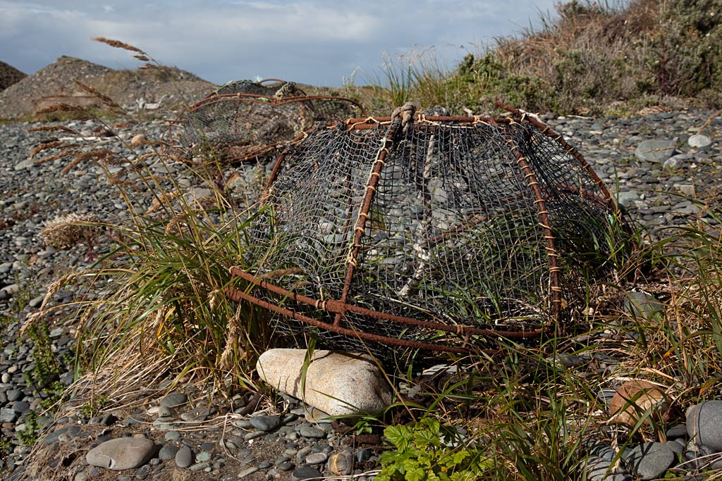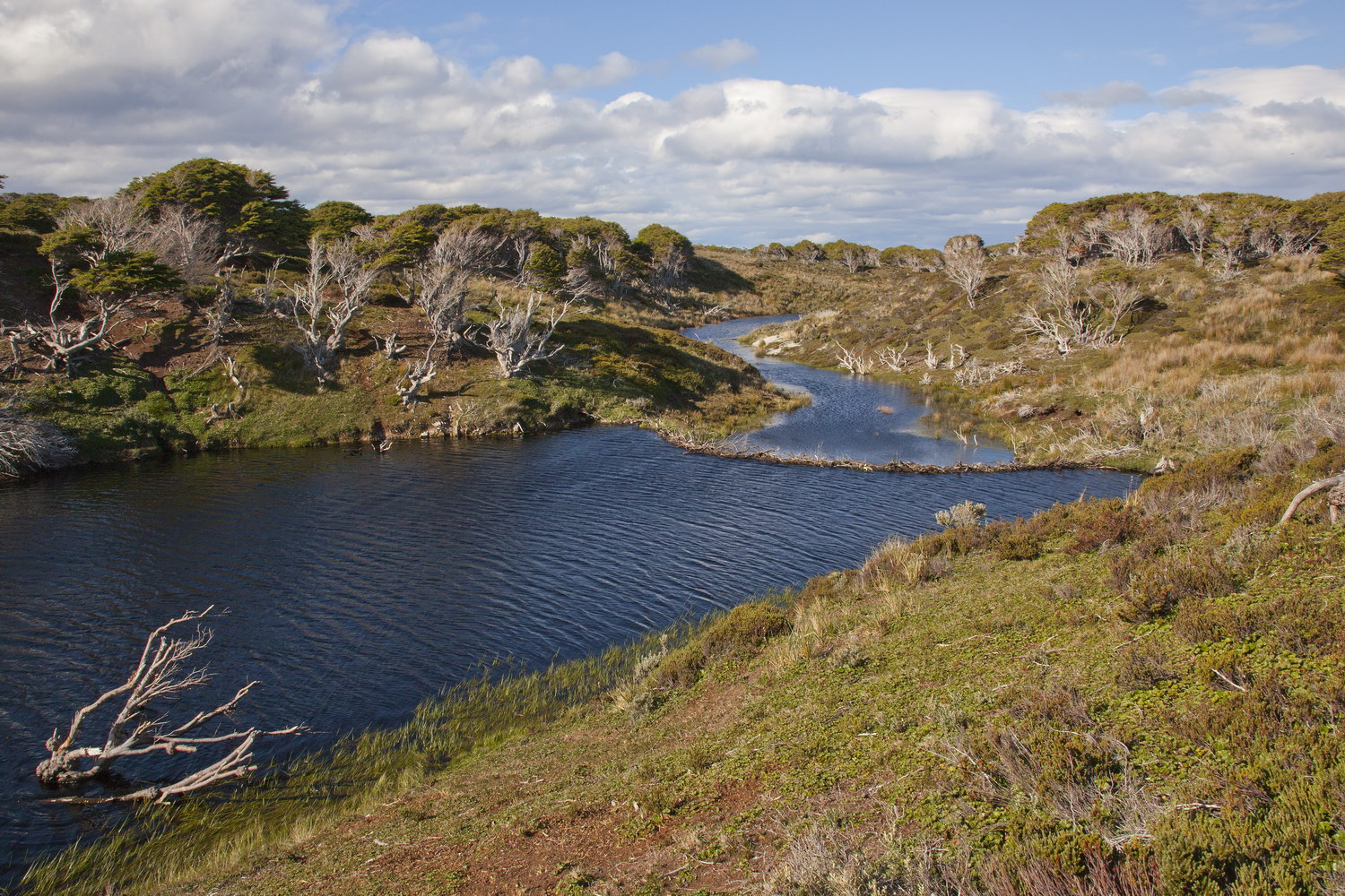 Место впадения не видно, но есть какое-то озерцо, отгороженное от пляжа как бы небольшой дамбой. Уровень озерца где-то на полтора, два метра выше уровня пляжа. В углу, под самой скалой, просачивающаяся вода образует мелкий ручеёк. Набирать воду тут неудобно, слишком мелко, да и кружку не взял с собой, растяпа. С трудом нахожу место где можно подняться на дамбочку, мешает колючий низкий кустарник. Вода в озере прозрачная, цвет определить не удасться, но думаю, что коричневатая, береа и дно озера похоже торфяные. Аккуратно, чтобы не взболтать грязь со дна, кладу канистру плашмя на воду, и жду пока она наполнится. Сам пока осматриваю озерцо. Такое ощущение, что дамба имеет искусственный характер. Но судя по растительности на ней, всё было сделанно очень давно. Канистра наполнилась. Закручиваю крышку, и сползаю вниз на пляж. Медленно иду по кромке пляжа, по плотному влажному песку обратно в сторону домика. Всё время оглядываю под ноги. Может что-либо интересное попадётся. Например по дороге сюда попался череп, похоже от гуанако, также видел несколько брошенных крабьих ловушек. Одну похоже можно будет восстановить. Беру это себе на заметку.
