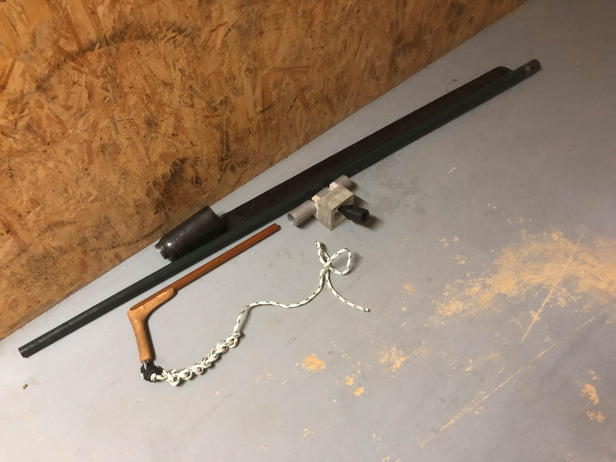 Если рукоятка смотрит наверх, то рука на рукоятке управляет углами атаки весла. Ограничивающая веревка крепится к веретену весла.