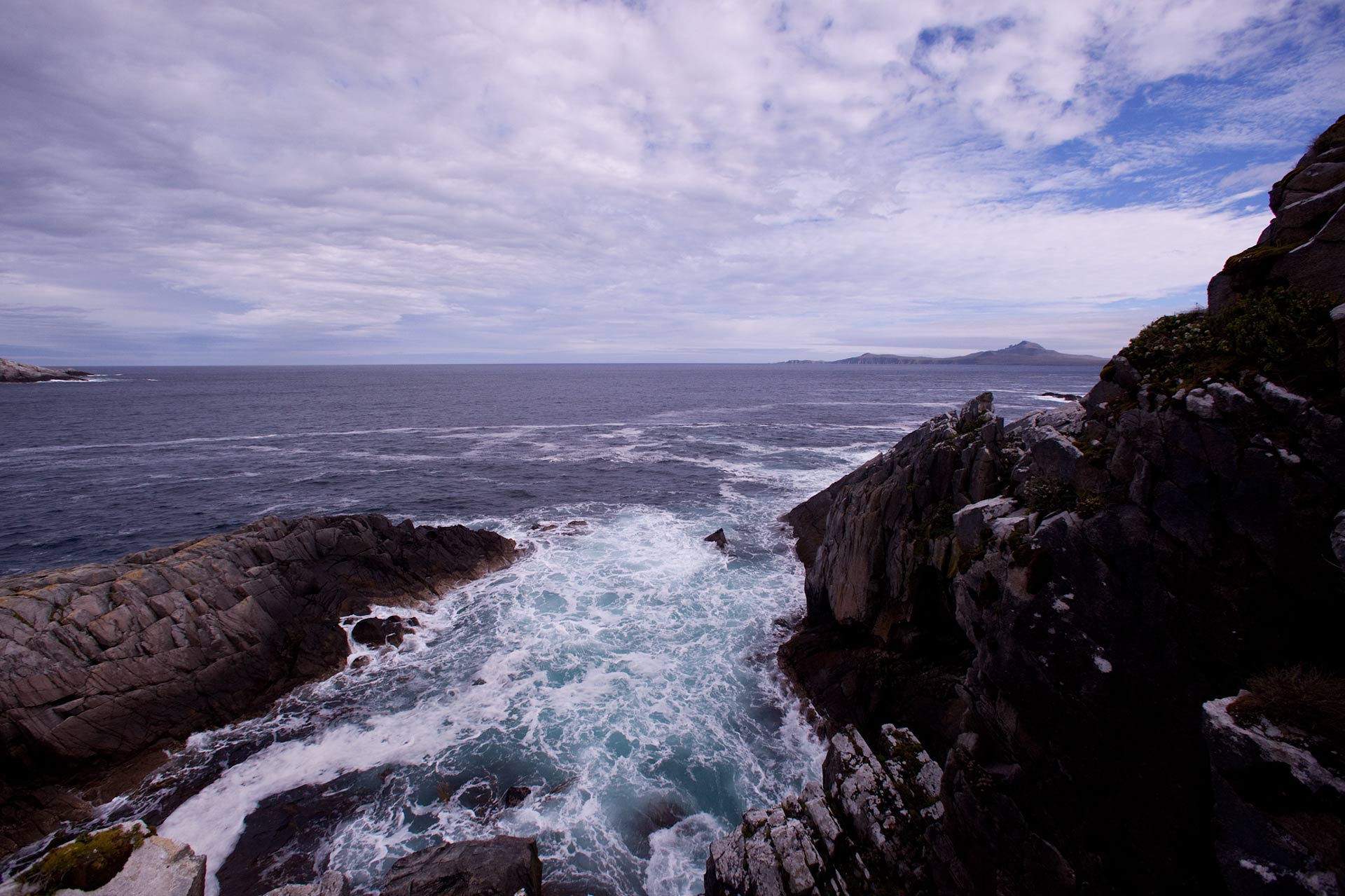 Сначала идем от домика к океану. Да, это уже не проливы и бухты, а открытое море-окиян. Он живет своей жизнью.Валы полого накатываются на скалы вздымаясь вверх фонтанами брызг. Иногда доносятся странные звуки которые издаёт воздух зажатый волнами в прибрежных гротах. И крики птиц. Красиво и сурово до невозможности.