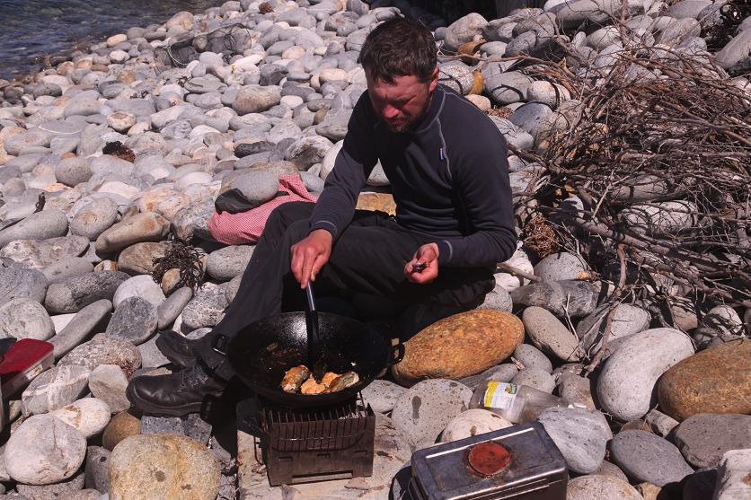 Погода была солнечная, мыс хорошо на прикрывал, и мы решили пожарить рыбу. Пожарили, поели.