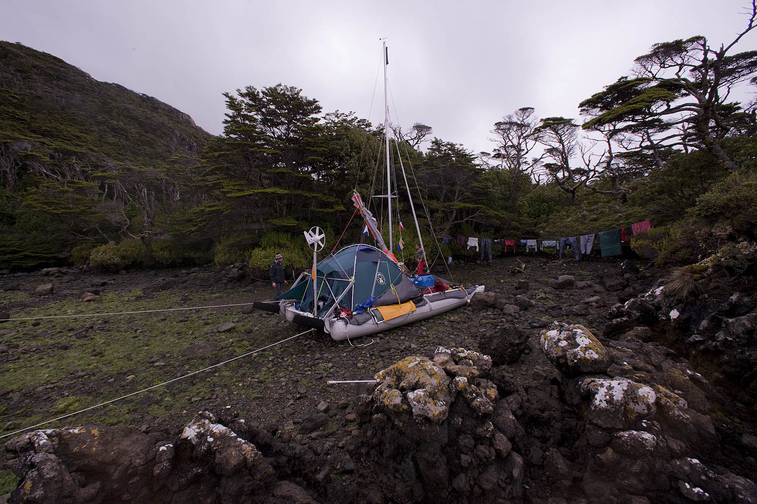 Под ним ставится внутренняя палатка от Cooleman. Внешний родной тент от неё тоже берём. Таким образом, есть возможность поставить палатку на берегу и на катамаране. Как будет удобнее.