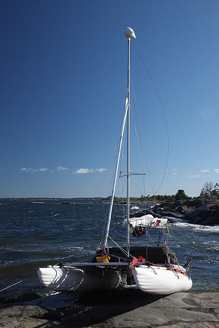 Мини палатка весом в 250 грамм. Она же рубка убежище. Может стоять на ходу. Оттяжке гика не мешает. Два человека могут лечь "валетом". Ткань силиконизированный рипстоп с блокировкой света, чтобы днём покемарить можно было бы