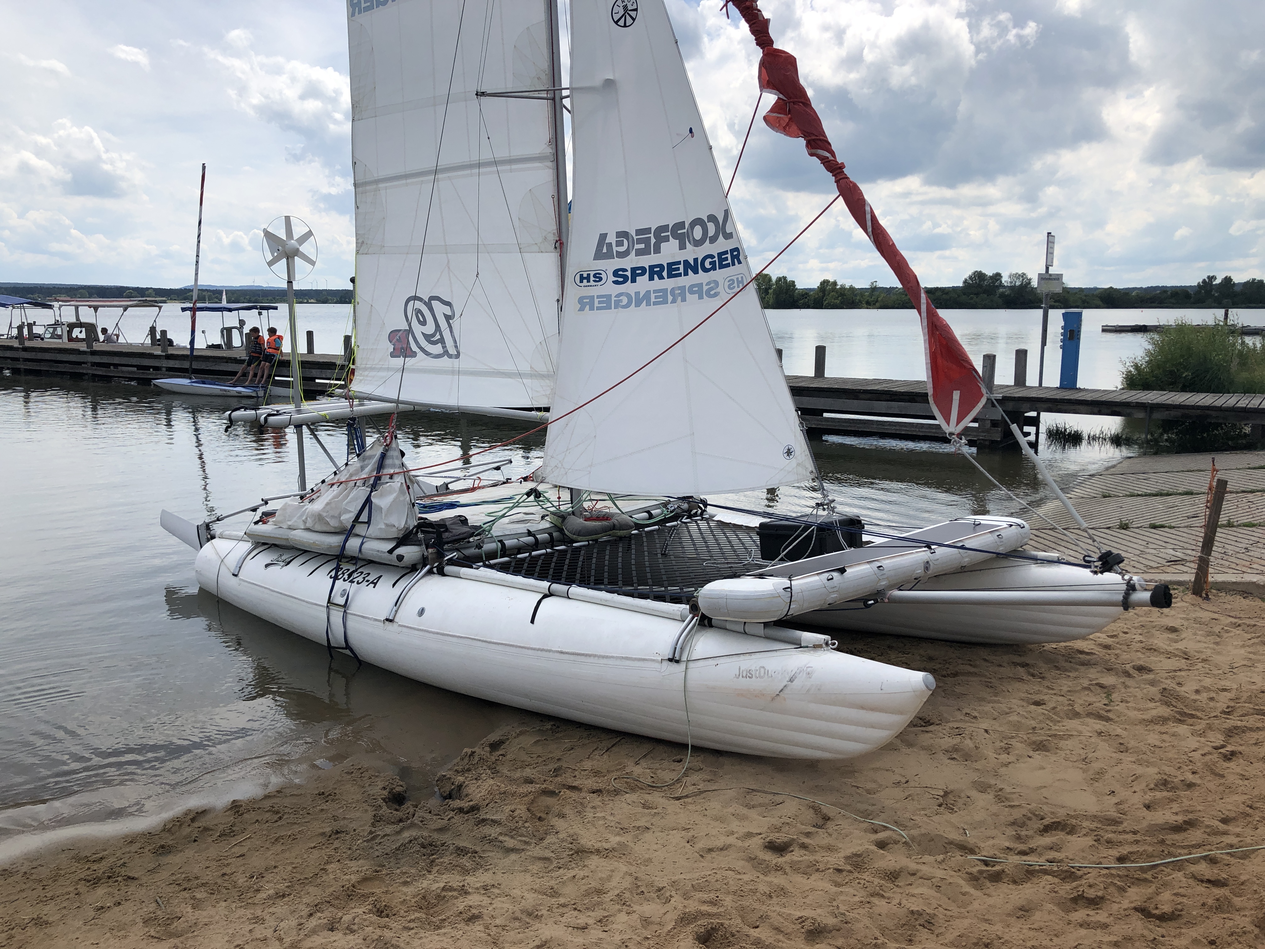 Подготовка к парусному походу с пешеходными радиалками в районе с сильными ветрами.