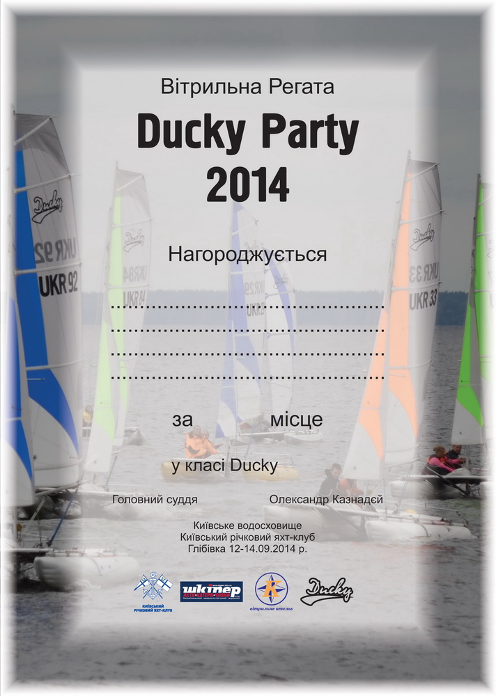 12-14 сентября 2014г., на Киевском вдхр., возле с. Глебовка, на базе Киевского Речного Яхт-Клуба, традиционно, состоится регата "Ducky Party 2014". Приглашаем всех "даководов" принять участие!