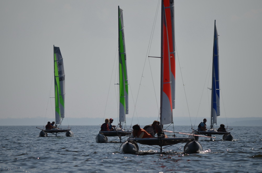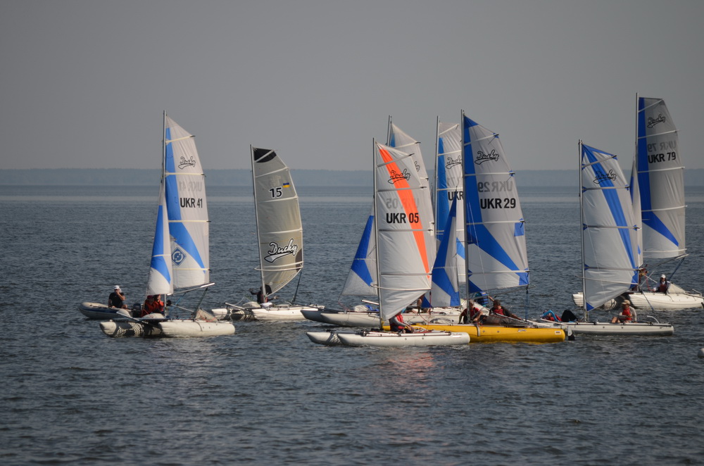 12-14 сентября, как и было запланировано, состоялась регата "Ducky Party 2014". В этом году в регате приняло участие 13 экипажей из Украины. Погода на удивление выдалась солнечной, тёплой и по настоящему летней, с температурой воздуха 26 градусов. Это было особенно контрастно в сравнении с прошлогодней погодой, когда катамараны приходилось собирать под проливным дождём. С ветром повезло меньше: в первый день соревнований штиль накрыл регату в первой же гонке и судья дал отмену. До вечера ситуация со штилем так и не изменилась. Зато все прекрасно отдохнули, кто за приятным общением, а кто принял участие в импровизированном футбольном матче. Одним словом было весело.