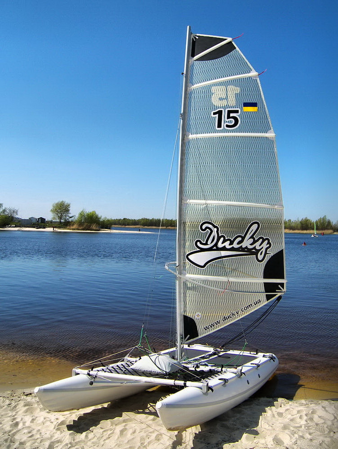 - Catamarans are equipped with blocks, sheets, stoppers and other parts from leading manufacturers