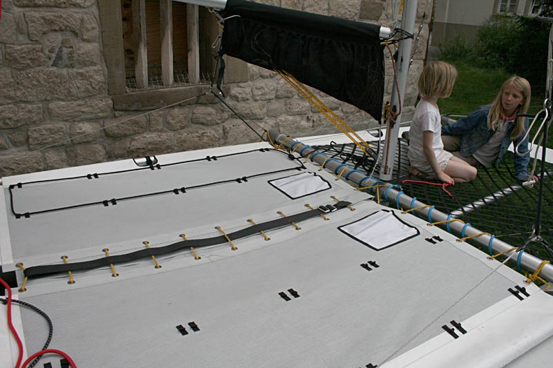 4. Нет защиты палубы от брызг или волн. Впереди сетка для багажа, которая не препятствует волнам и брызгам от поплавков.