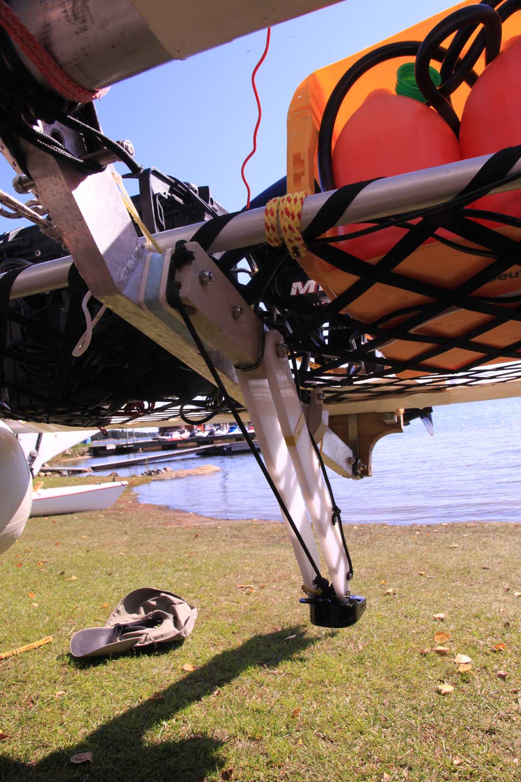 Перенес сонар на торец транца с возможностью откидываться назад при наезде на препятствие.
