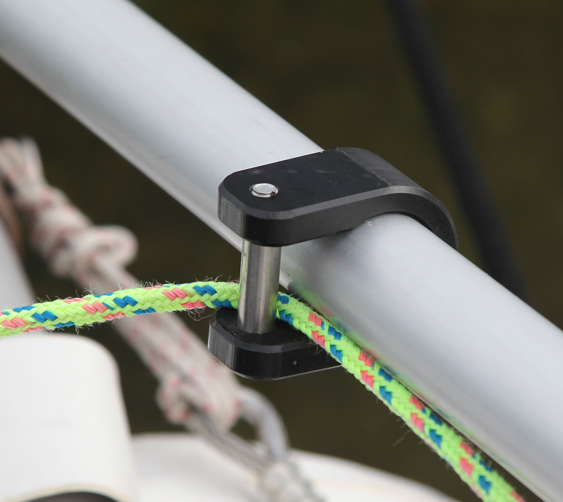 Крепление упора транцевой доски с помощью ремней крепления блоков управления швертом.