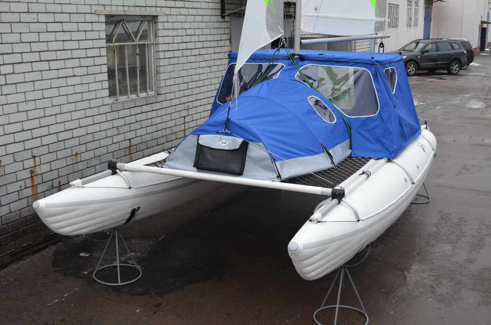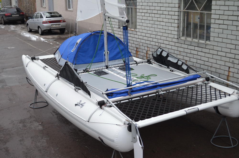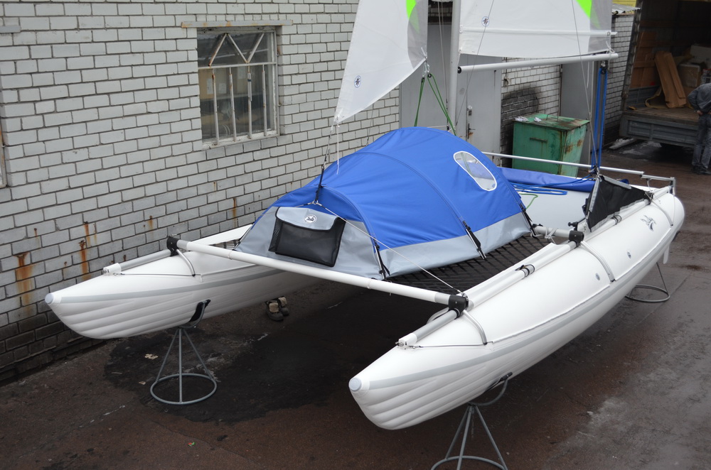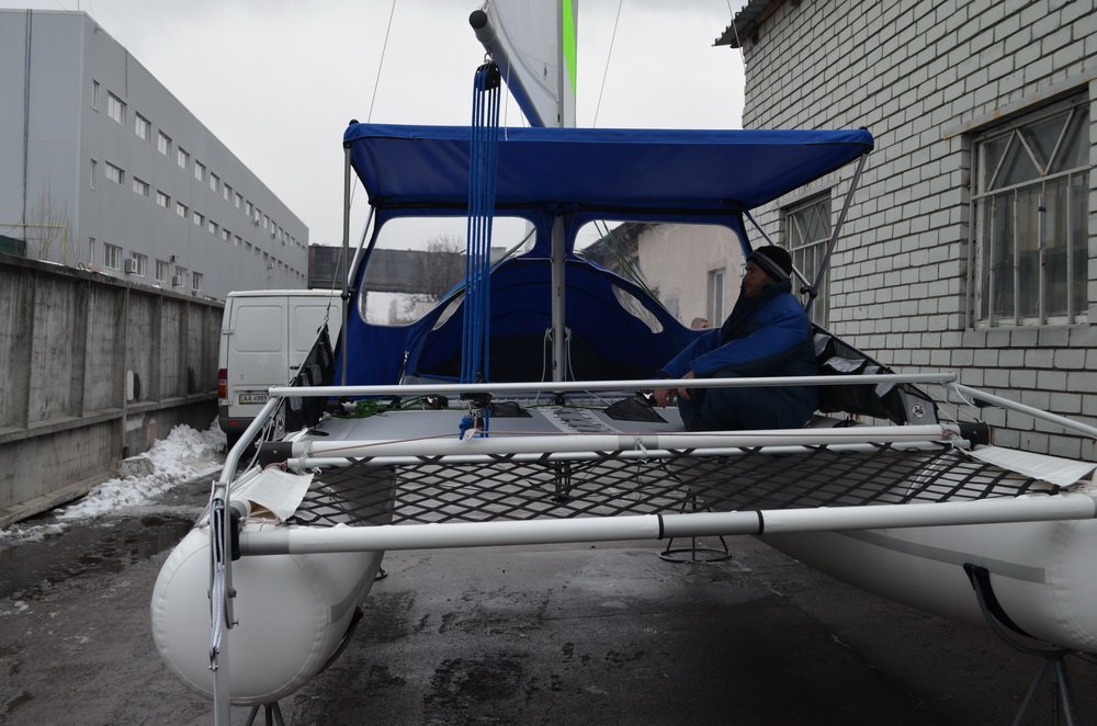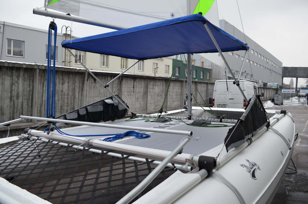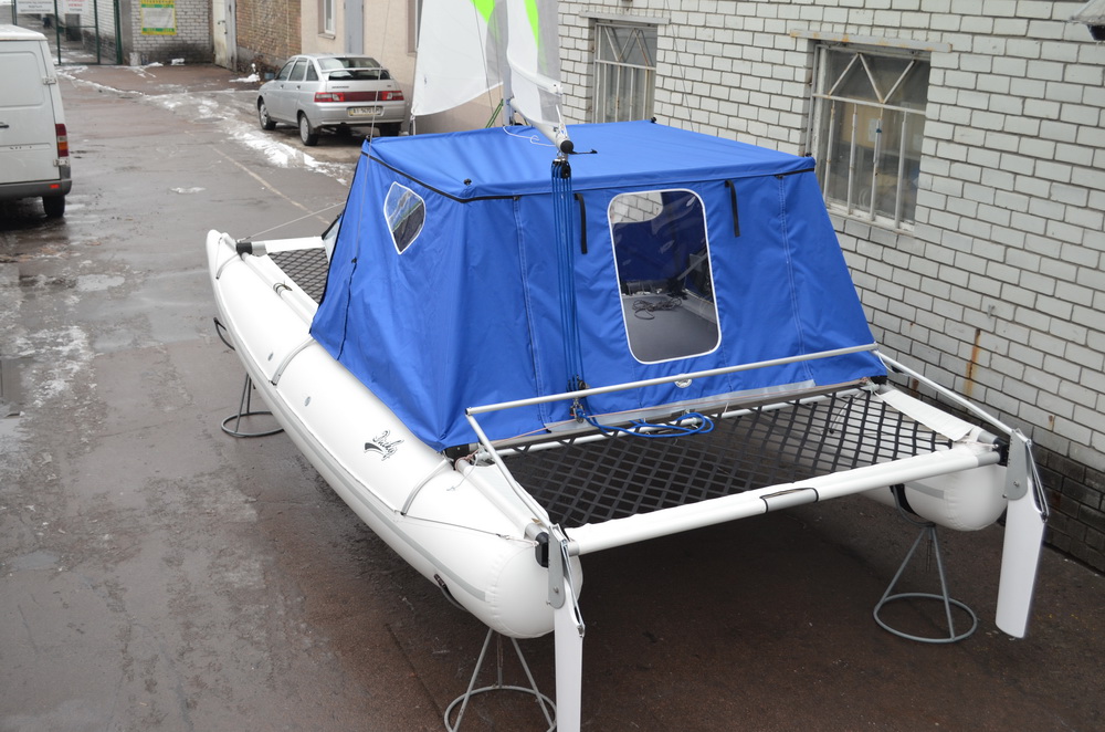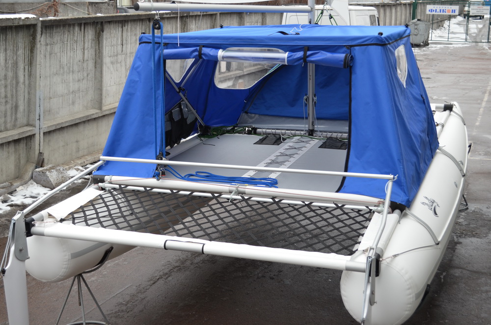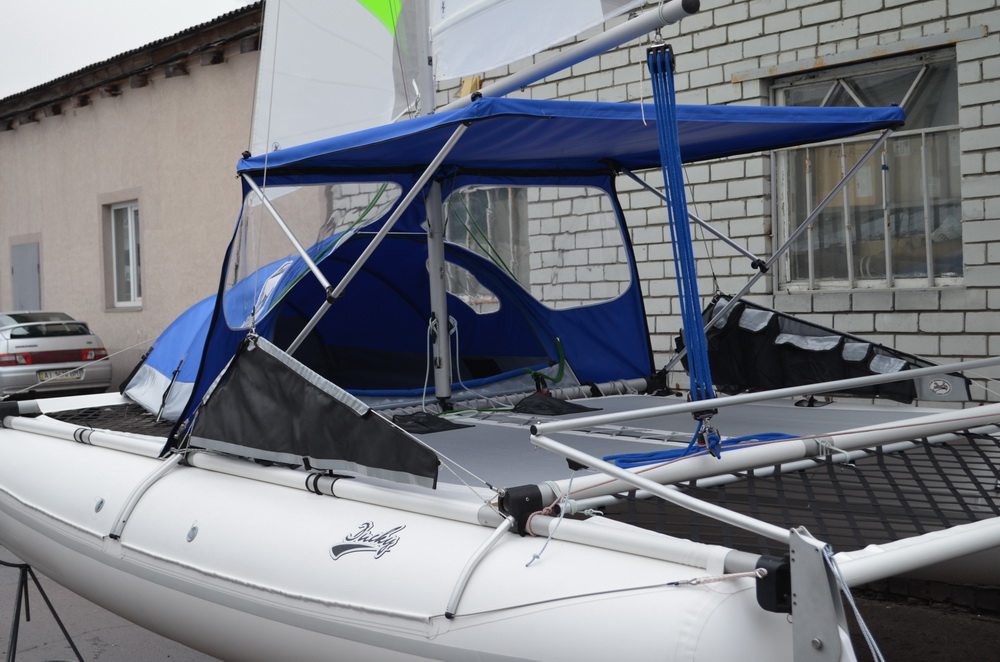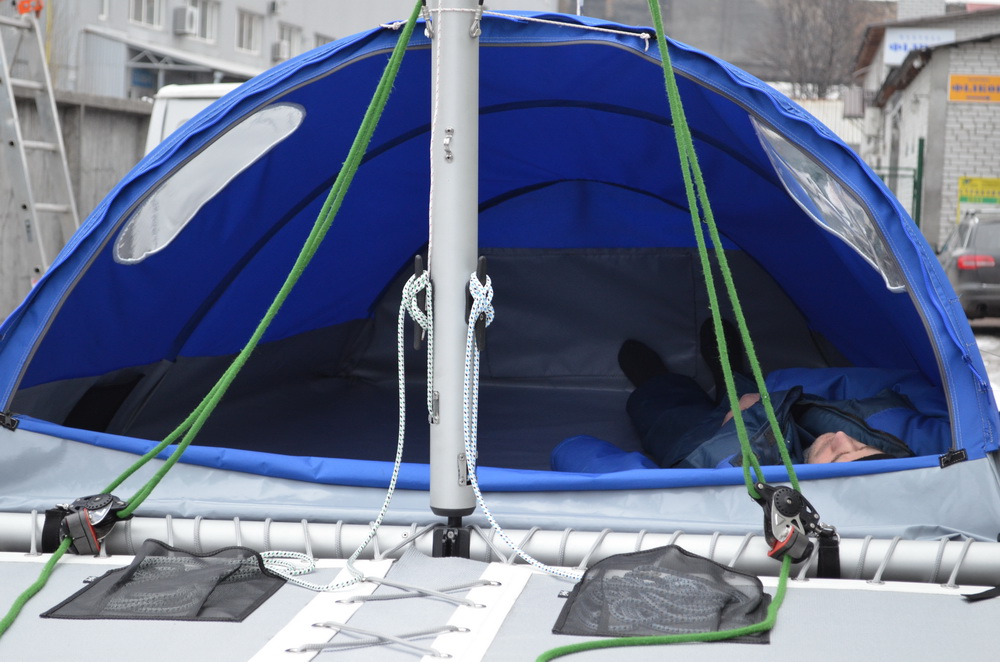 Для Даки17 такой ходовой тент сделать вряд ли получится - слишком низко расположен гик и всё будет неоправданно мелким. Палатка получится такой, что взрослый человек в ней не сможет лечь во весь рост. Какой смысл тогда во всём этом? Для сравнения у 19-го высота тента получилась 1100 мм, да и габариты трамплина и передней сетки несоизмеримо больше. Но стояночный вариант вполне может быть. Над этим сейчас работаем, есть разные мысли. Если пользователи подскажут, что именно и для каких целей они бы хотели иметь, это могло бы помочь процессу.