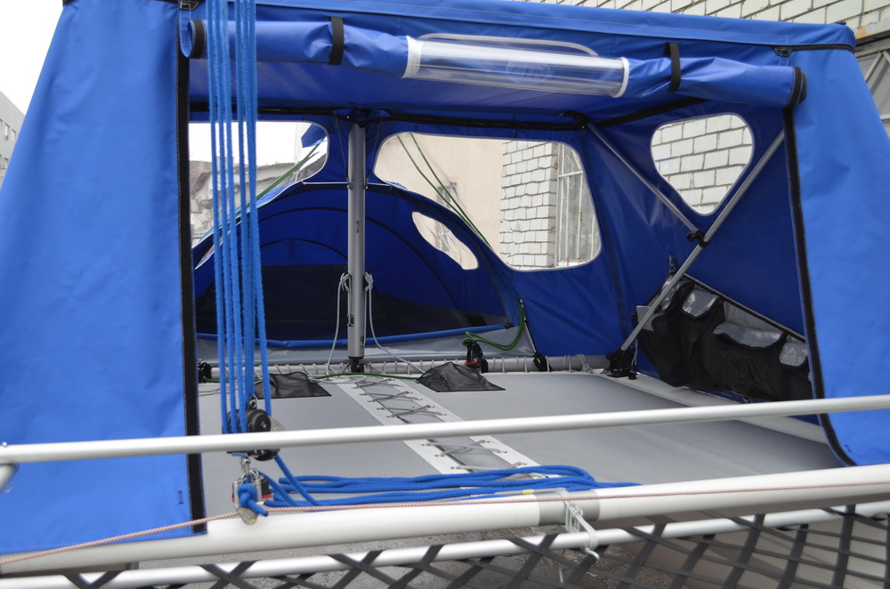 2. Палатка. Предназначена для укрытия экипажа. Также может быть установлена на основном трамплине или на берегу. Основные размеры: 1940х1600х800 мм.