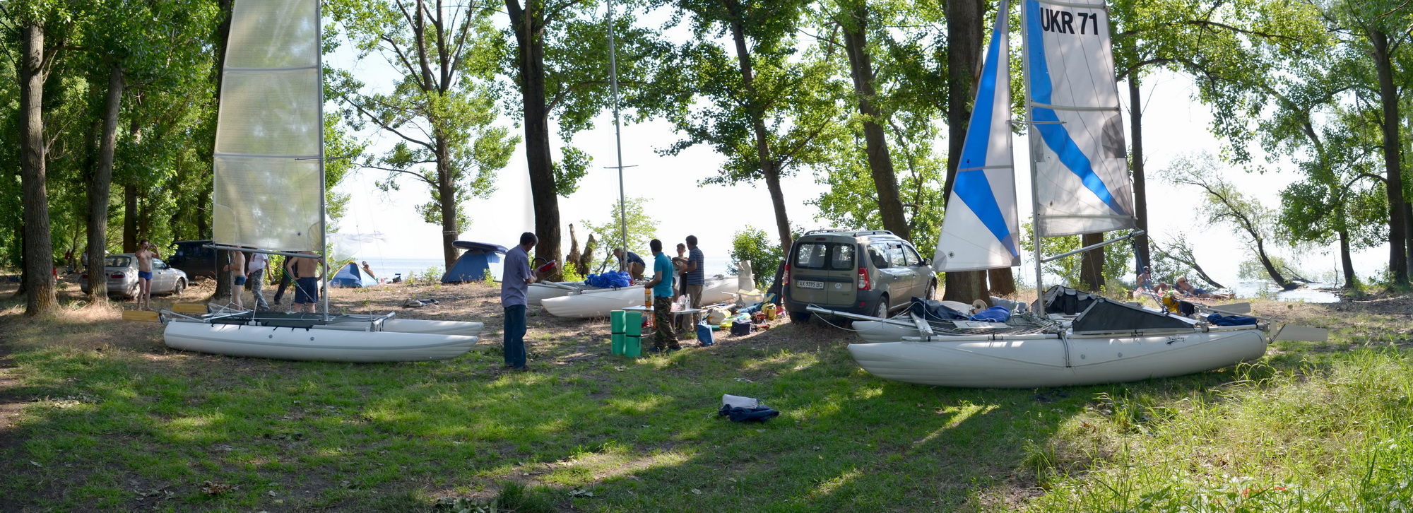 На Троицу образовалось несколько выходных. Появилось желание провести их на природе, вдали от пыльных городов. Выбор пал на полюбившееся Кременчугское вдхр. - места там красивые, разливы широкие и людей немного. Покатались по островам. Отдых получился матрасным и хорошее впечатление не смогли испортить ни гроза, ни злые комары.