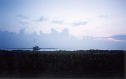 ..вечер на Обиточке, вид на заливчик с останками кораблей...