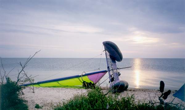 9.30. Центральный ж-д вокзал Киева. Несем вдвоем трубы рамы в мешках на плече, в тюке "тряпки", за спиной рюкзаки. Встречается нам гружоный как мы еще один "экстримал", радосно и с пониманием в голосе: ".. что мужики , тоже дельтаплан тянете, да?" Мы скромно: ".. нет , катамаран с поплавками и палубой.. ". В ответ - " -оо!"
