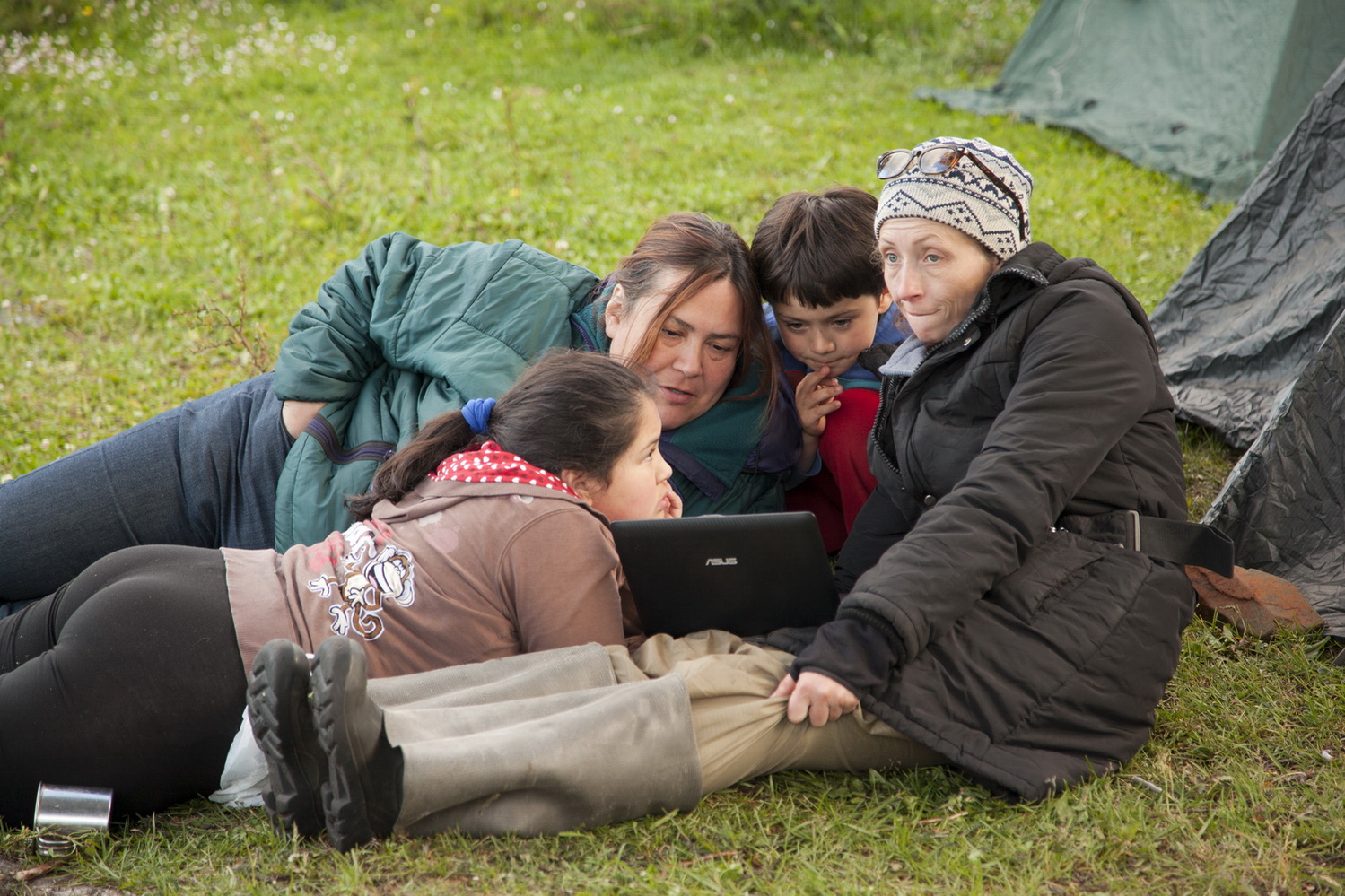 Сесиль часто навещала нас на поляне и однажды попросила Женю покатать ее дочек на каяке. Уж больно девчонкам хотелось попробовать подержать весло в руках. И вот они приехали: Сесиль, две девочки и мальчик – их друг. Женя как следует подготовился, одел непромокаемые штаны. Ведь ему в воде долго быть – пока он всех детей перекатает. И вот он берет на руки сначала мальчика, несет к лодке, чтоб ребенок не замочил ноги в холодной воде. Показывает, как держать весло, и старается быть рядом и страховать от случайного переворачивания каяка. Потом выносит ребенка на берег, берет следующего, тащит в море, показывает, следит… И тут вдруг мы видим, что, пока один катается на лодке, двое других… не просто бегают по воде (!), они купаются, прыгают, падают, брызгаются и хохочут от радости. Прямо в одежде, прямо как на берегу теплого моря. Мы обалдели. :shock: Дул ветер, мы кутались в ветровки. А тут такое! Температура воды порядка семи-восьми градусов. А они носятся по пояс в воде, бесятся, падают, теряют свои шлепанцы и лазят потом по дну в поисках. И так с полчаса, наверное. А Сесиль , полулежа на гальке на берегу, так спокойно и снисходительно созерцает сей процесс. Я ей говорю: «Фрио!» (типа «холодно»), а она: «Но проблема, Марина. Релакс! Но проблема». И так довольно улыбается. Потом Олеся говорила, что Сесиль ее спрашивает: «А что, Олеся, у вас в России бывает так же тепло, чтобы купаться?» ТАК же ТЕПЛО (?!)