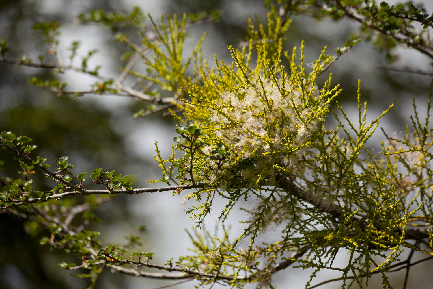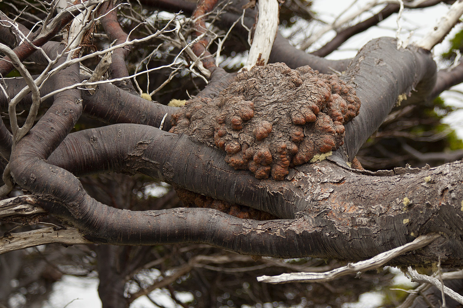 Так же на многих деревьях растут такие кустистые растения-паразиты. Причем они цветут даже, потом вянут и через время покрываются корой. И это все одновременно на одном дереве.