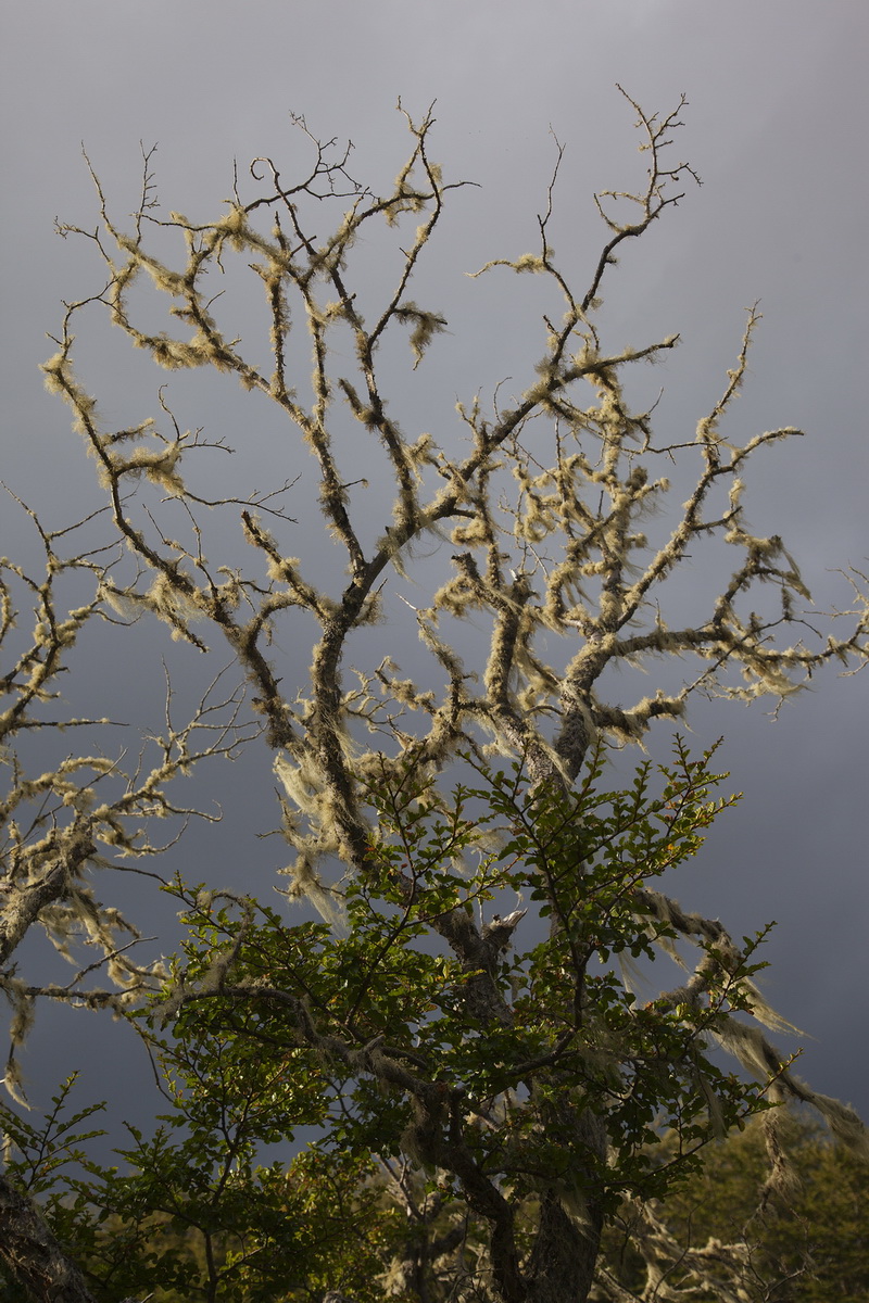 Ну и, конечно, все живое и неживое покрыто мхом. Иногда он красивой длинной бородой висит на отдельной веточке, иногда, как гирляндами новогодняя елка, украшены целые деревья. И все это весело качается на ветру.