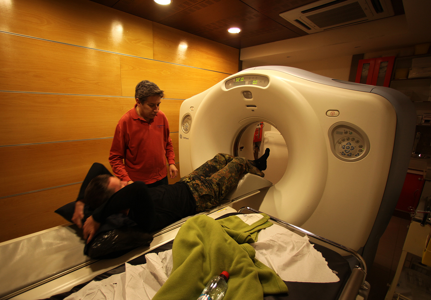 Костю увозят для томографии. Мне разрешаю последовать за ним, и я снимаю весь процесс.
