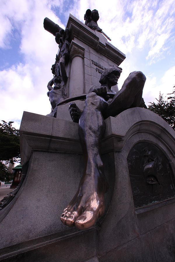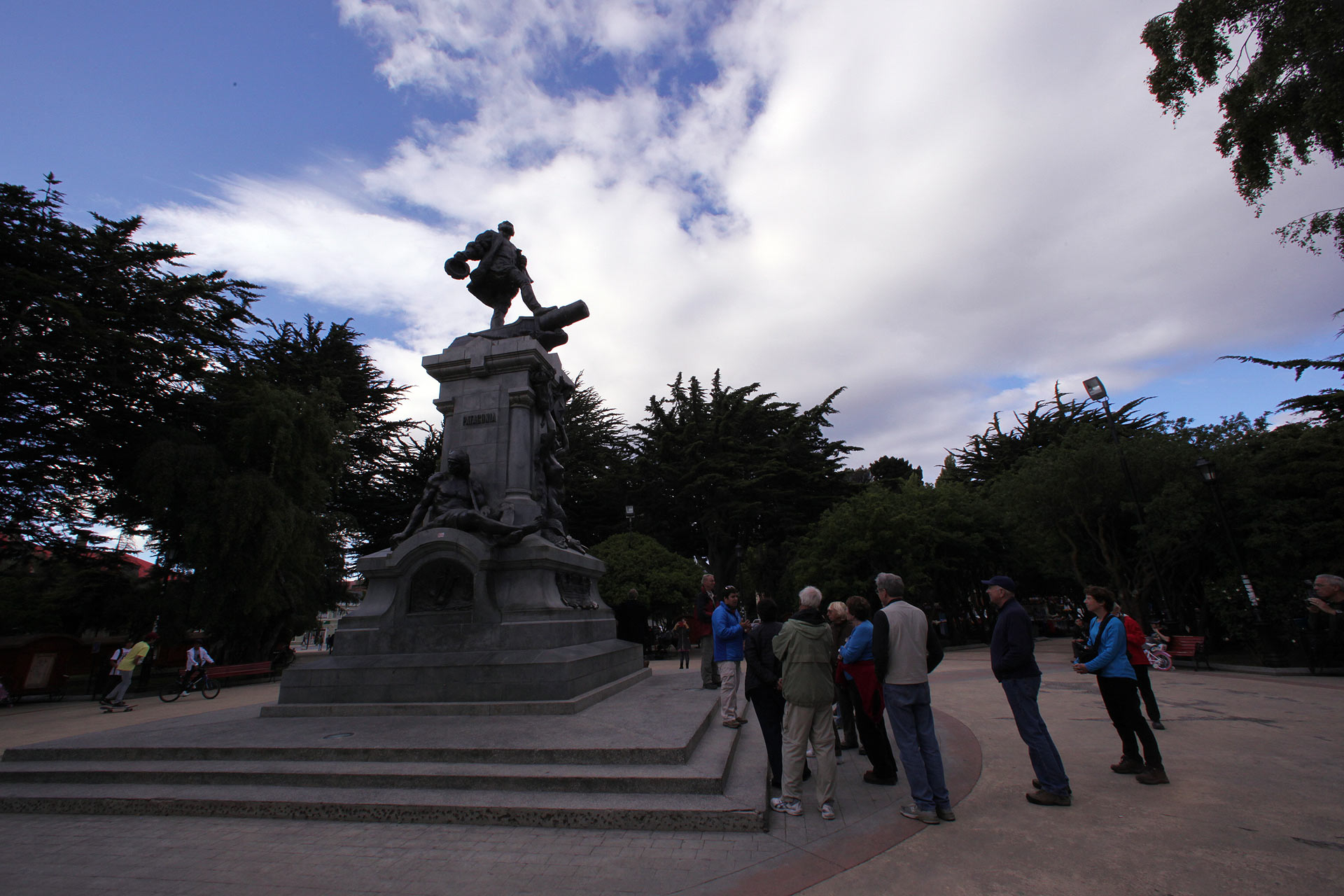 Доехали на маршрутном такси до центра и пошли на площадь Магелана. Костя тоже решил потереть палец индейца на счастье, и сфотографироваться на фоне памятника.