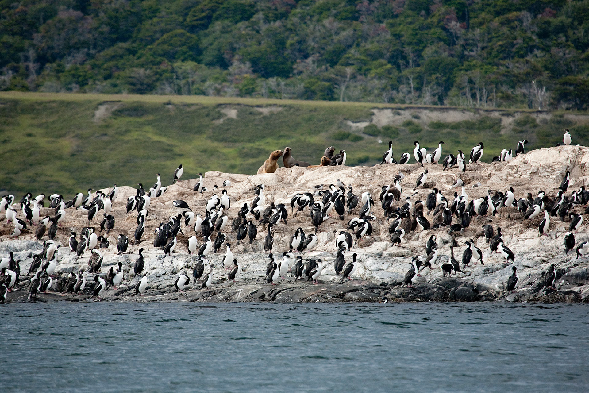 Связываюсь с Олесей по радио и выясняю планы на сегодня. Она сообщает, что собирается стать на стоянку на юго-восточной оконечности Наварино. Ок, это уже недалеко. У нас есть время отснять птичий базар и морских львов. Мы только что проскочили интересный островок. Разворачиваемся в обратном направлении.