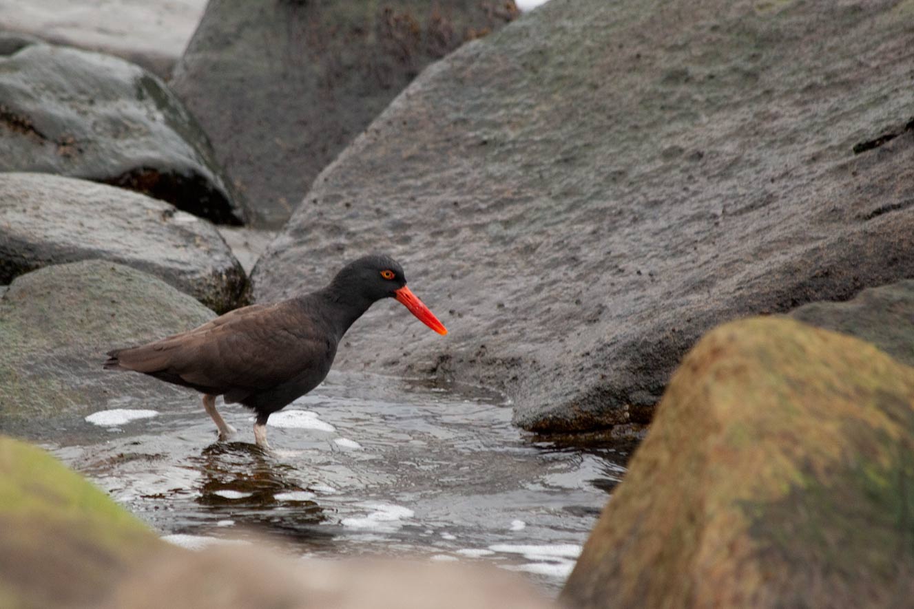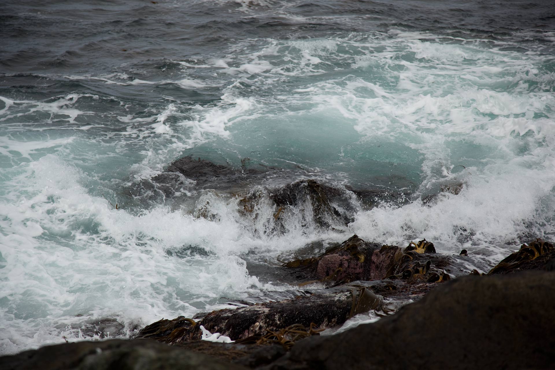 Сначала идем от домика к океану. Да, это уже не проливы и бухты, а открытое море-окиян. Он живет своей жизнью.Валы полого накатываются на скалы вздымаясь вверх фонтанами брызг. Иногда доносятся странные звуки которые издаёт воздух зажатый волнами в прибрежных гротах. И крики птиц. Красиво и сурово до невозможности.