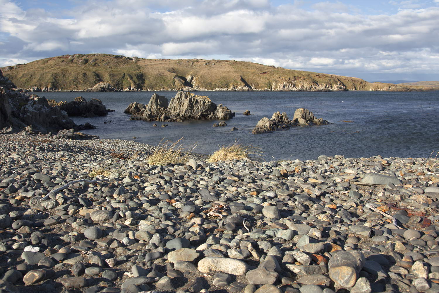 Утром стихло, не совсем, но сильных барашков нетю Ветер с запада. Пакуемся. Постараемся дойти под прикрытием берега до северной оконечности Леннокса, затем в пол ветра до бухты на северном побережье острова Пиктон. Где-то 40-45 км по генеральному курсу.