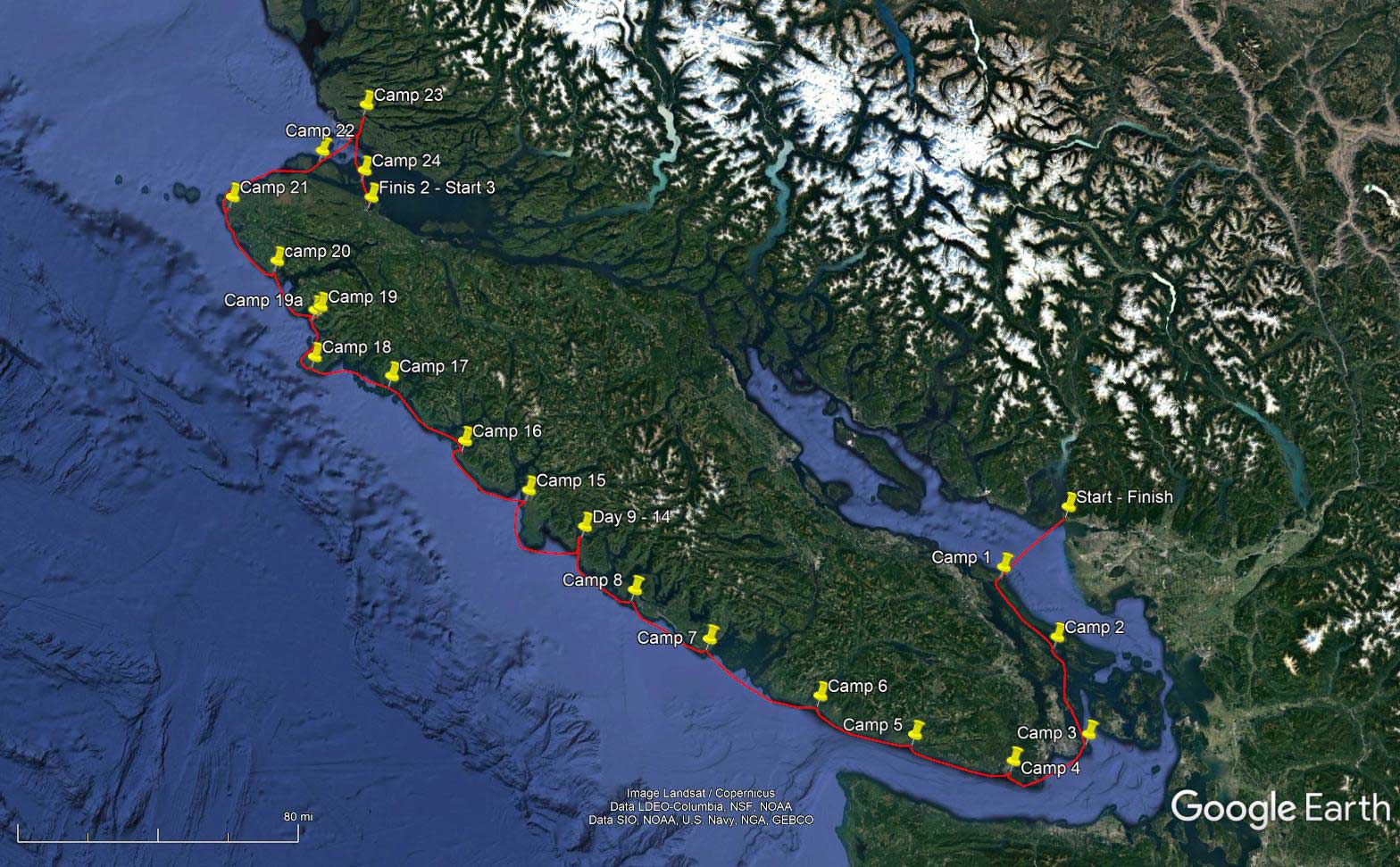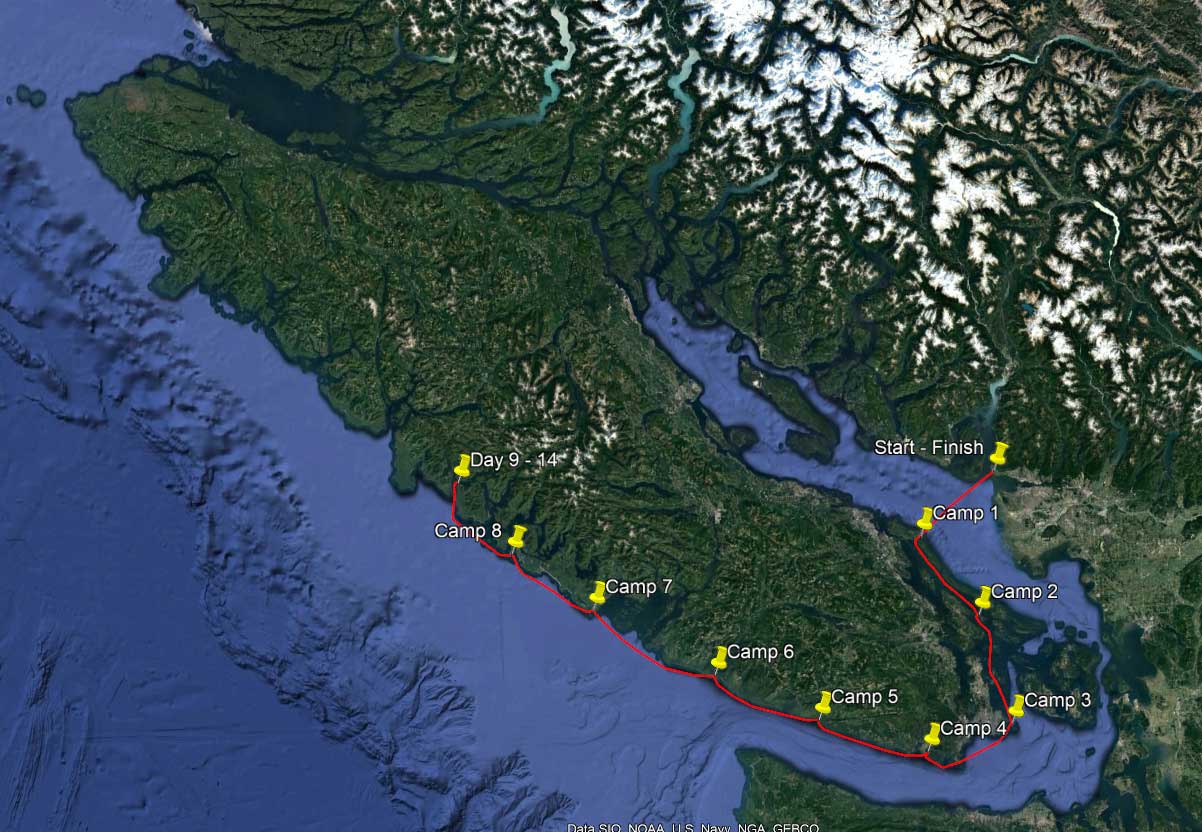 Обдумал, и предлагаю маршрут - "кругосветка" вокруг острова Ванкувер. 1000 километров по генеральному курсу.