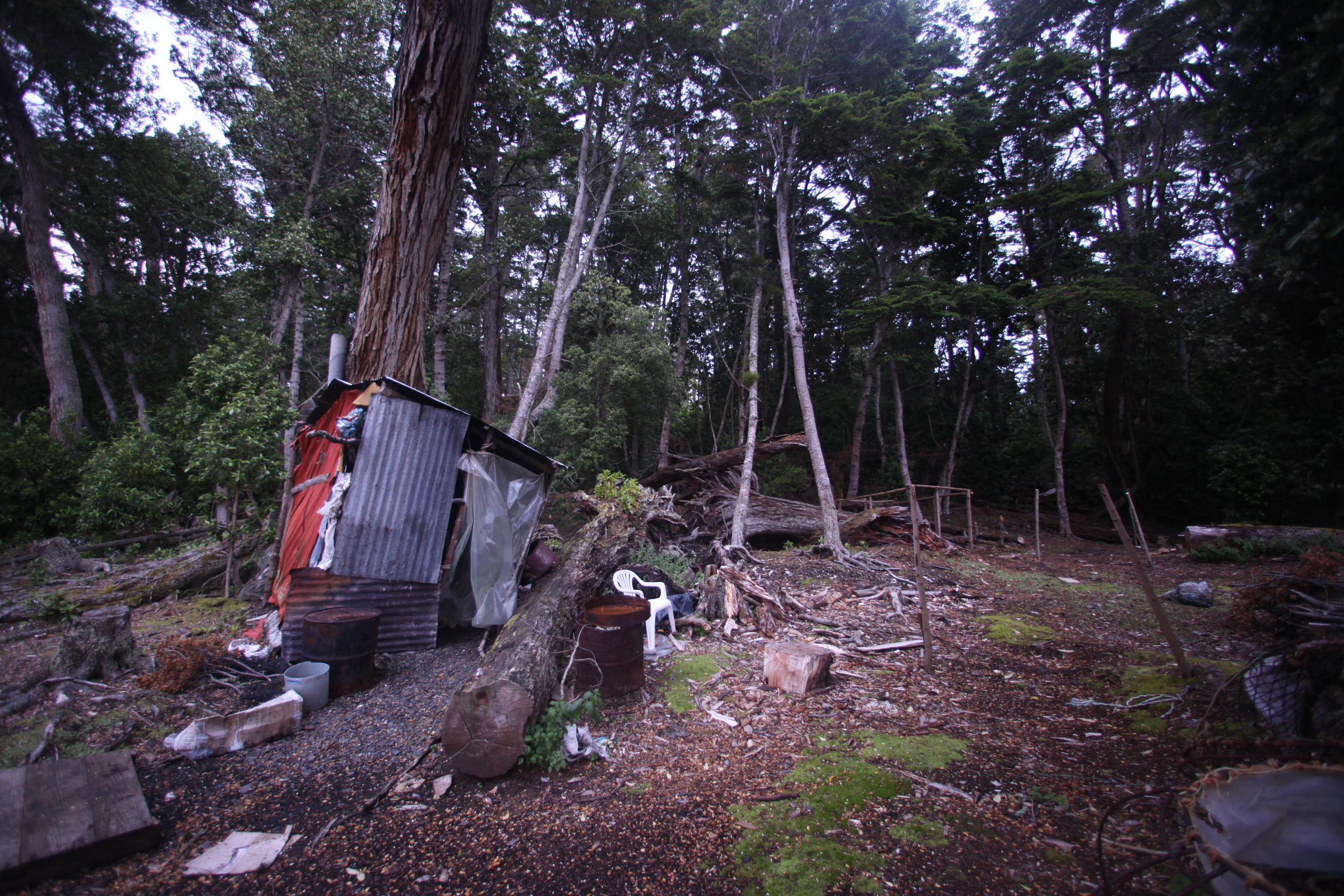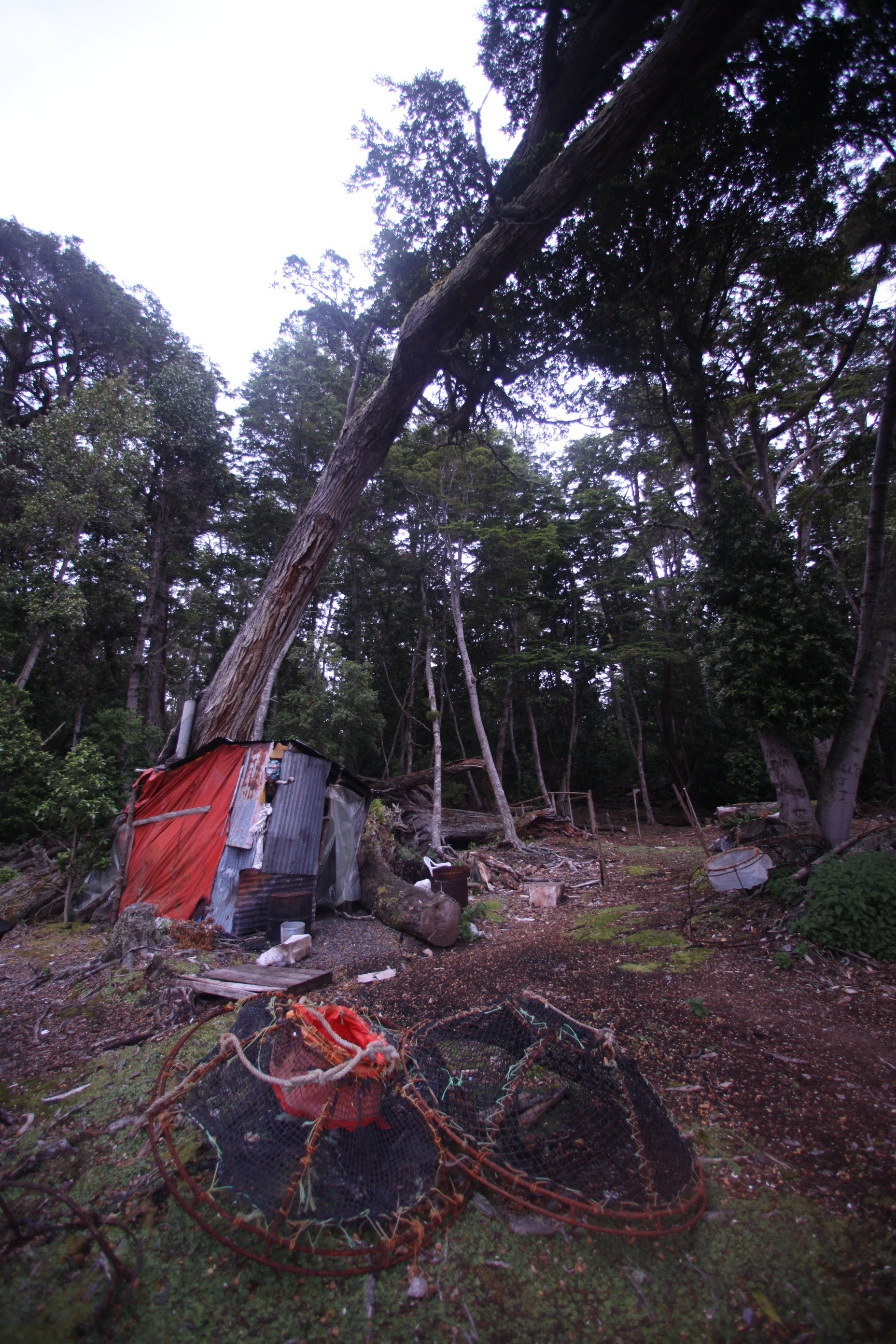 В кустах обнаружился временный лагерь краболовов. Сейчас не сезон.