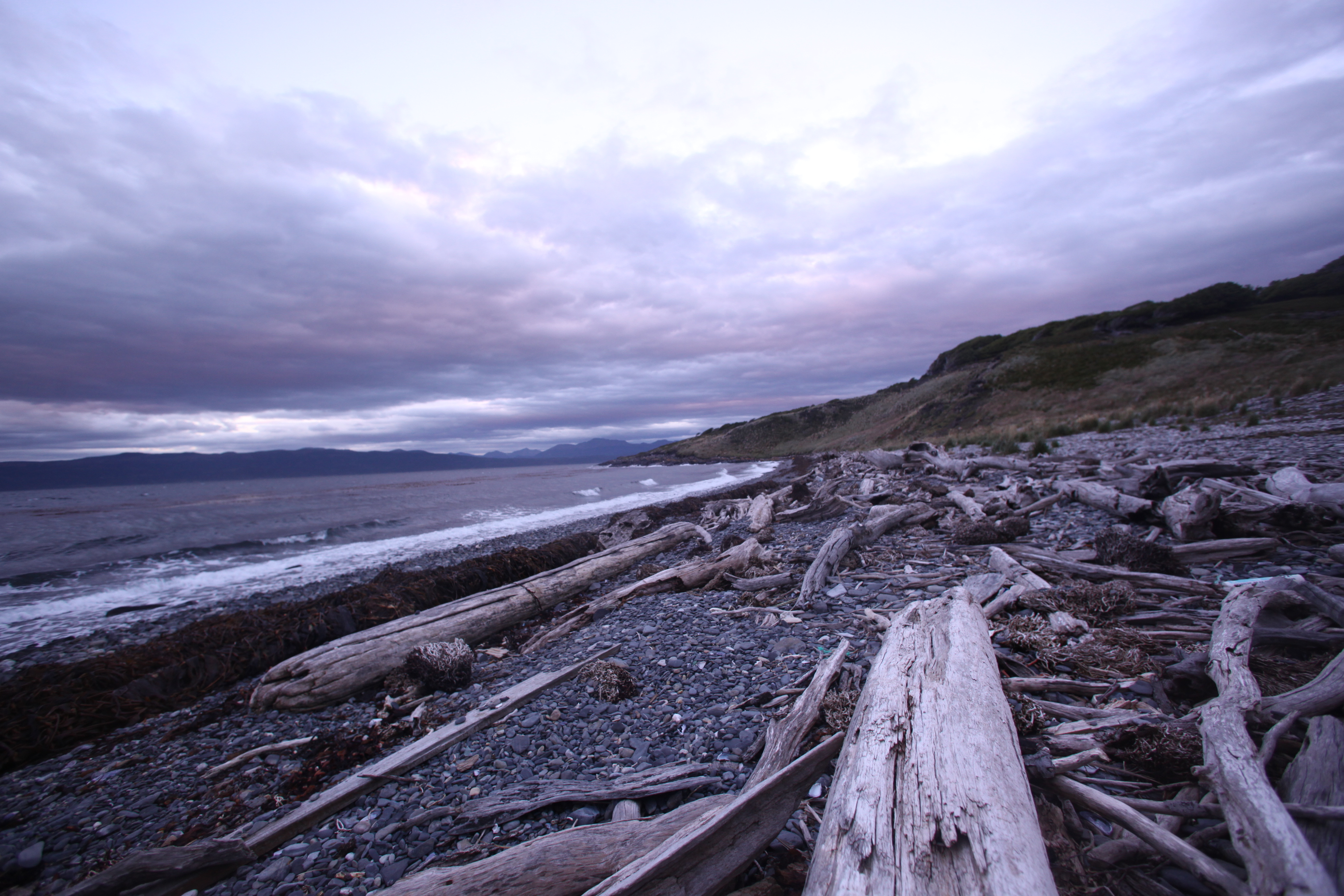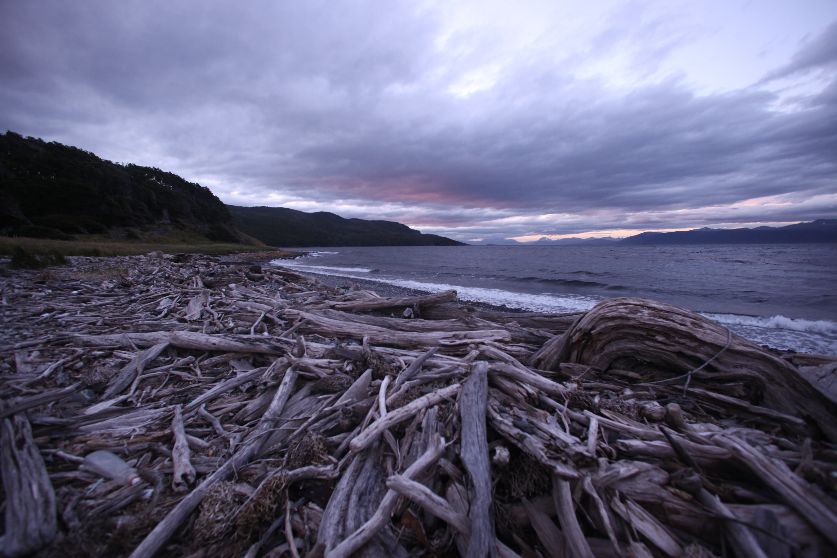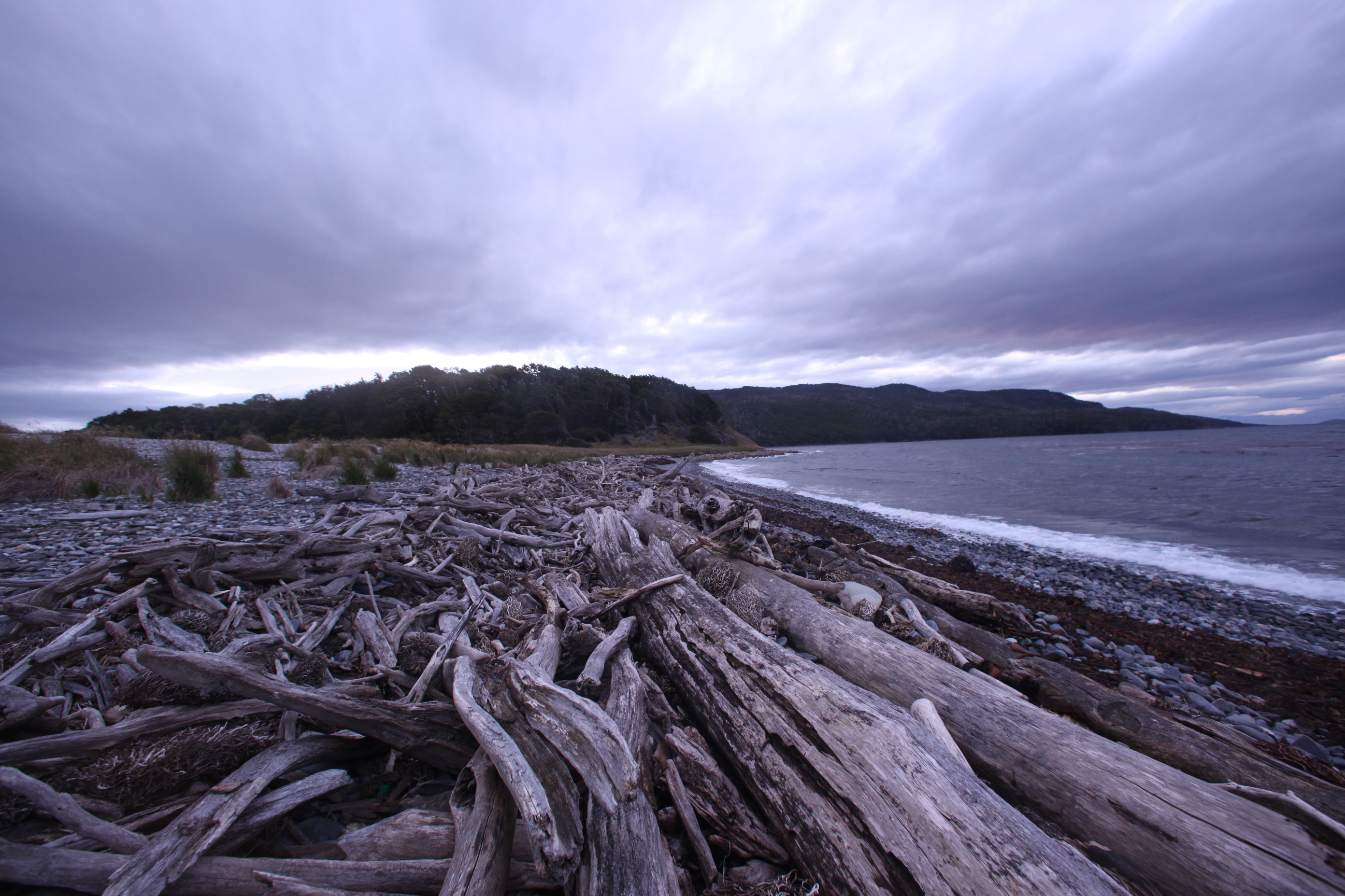 Выбрался на внешнюю сторону острова. Весь берег завален плавником.