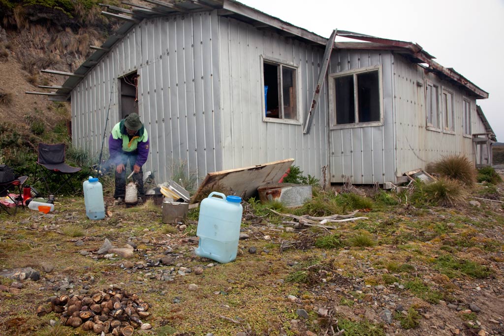 К обеду начинает светлеть. Облака поднимаются повыше, но ветер не прекращается. Марина уходит снимать. Костя берёт снасти и идёт ловить рыбу. Катушка уже полностью поломалась, но он сообразил новую донку. На острове Горн он откуда-то скомуниздил несколько больших ржавых гаек. Это немного получше чем т-образное соединение от водопроводной трубы в качестве грузила. Ветрогенератор гудит. Контроллер зарядки показывает, что всёзаряженно под завязку, и ветрогенератор работает сейчас в режими автоторможения. Меня намного смущат какая-то непонятная вибрация. Раворачиваю ветрогенератор плоскостью лопастей по ветру, чтобы он остановился. Это что ещё такое? В кольце соединяющих лопасти нет одного сегмента. Похоже ночью была такая скорость вращения, на которую конструкторы не расчитывали. Ну что же, нужно резать. Для сохранения балансировки выпиливаю другой сегмент кольца с противоположной стороны. Теперь главное всех предупредить чтобы были поосторожней в районе ветрагенератора. Может рубануть. Проверяю барометр, похоже начал ползти вверх. Это хорошо. Работаю с картой. Просчитываю различные варианты возвращения. Их два. Один по тому же пути как мы шли сюда, а другой через остров Ленокс и Пиктон. По расстоянию они почти одинаковы. Завтра посмотрим.