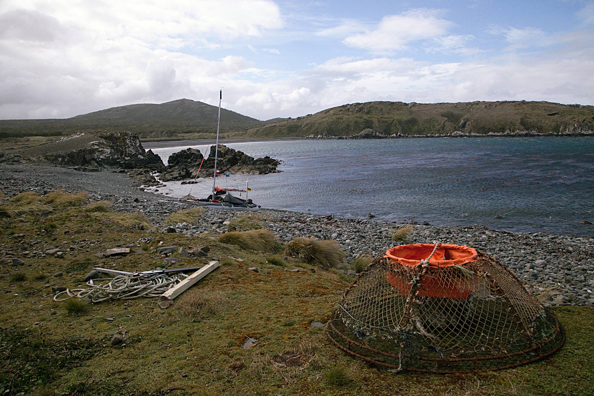 Судя по остаткам крабов на берегу, они тут водились. Мы отремонтировали одну из брошенных ловушек в надежде поставить её в паузе между порывами, но у вы пауз не было.
