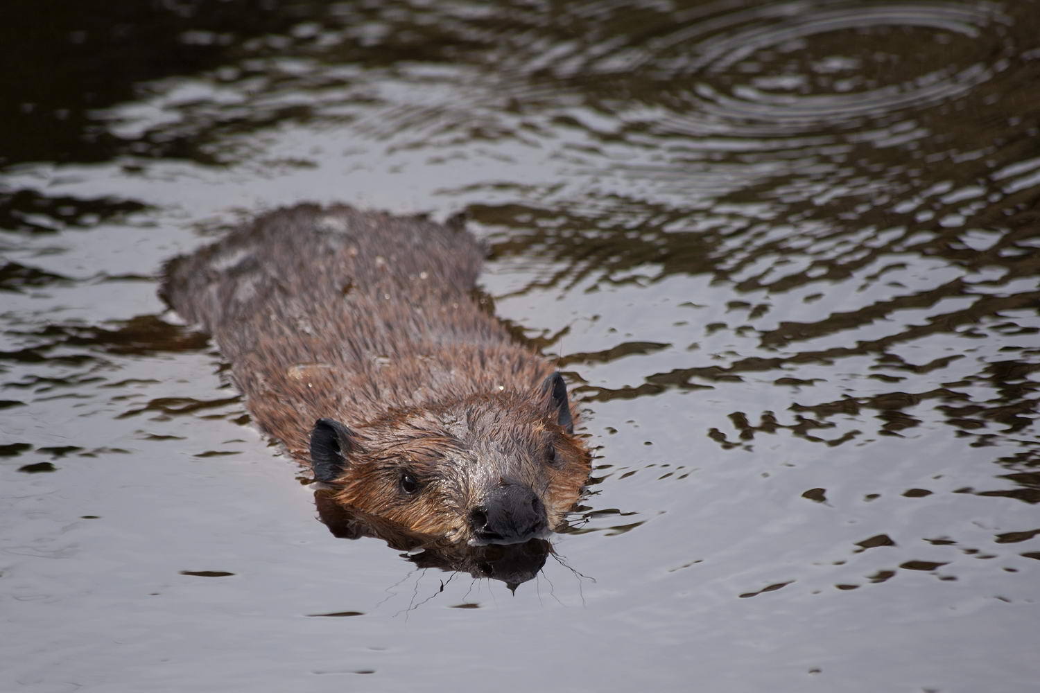 Вечером я пошла прогуляться в надежде застать бобров за каким-нибудь их делом. Нашла маленький "семейный" пруд с одной хаткой и парой, вероятно, "домашних" же уток. Они мирно плавали, охраняемые крупным бобром. Несколько раз появлялась бобриха, подозрительно на меня смотрела, и ныряла, громко хлопая хвостом по воде. Когда я уселась, чуть ли не свесив ноги в пруд, утки испугались и улетели. А бобер стал плавать туда-сюда, тихо внезапно исчезая итак же внезапно появляясь, и все время зорко за мной следил. Потом вылез с противоположной стороны прудика и стал чесаться. Он оказался таким крупным с красивой блестящей темно-коричневой шерстью. Смешно чесал толстое пузико маленькими "ручками", потом стал что-то очень громко жевать, как будто отдирал щепу.