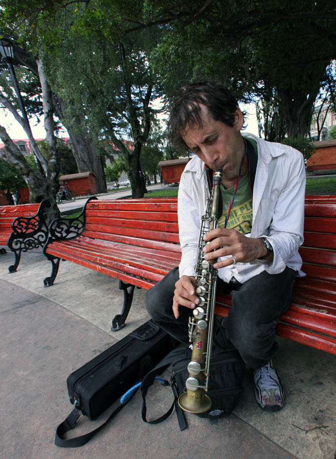 Затем прошелся пешком до центра, заглянул на площадь Магелана. Сфотографировал памятник и уличного музыканта.