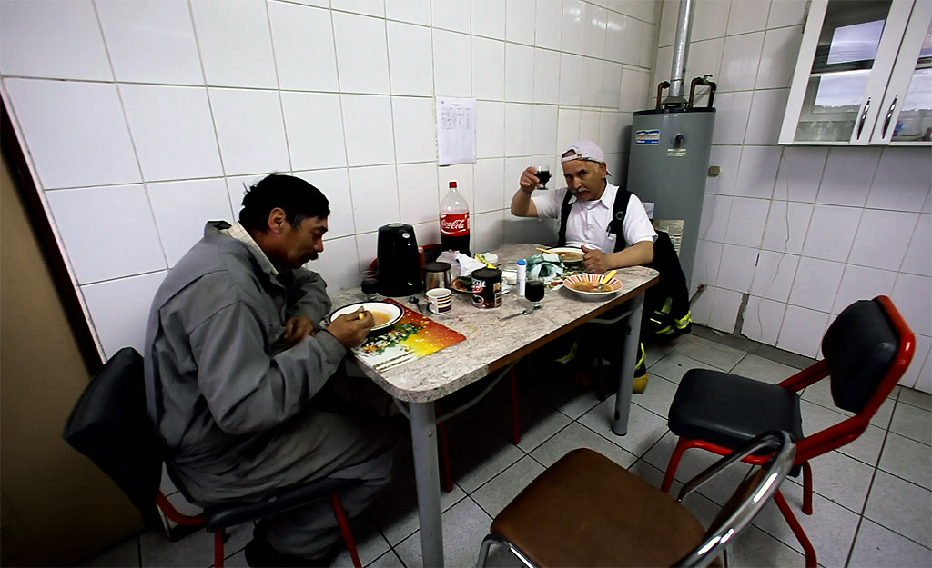 Часть народа столпилась около динамика транслирующего радио переговоры. В городе что-то где-то происходило. Внезапно в собщении прозвучали слова "бомба алемано" и несколько человек кинулось одеваться в пожарные костюмы. Жалюзи ворот поползли вверх, и одна из машин с сиреной помчалась на вызов. Мне удалось это заснять - https://www.youtube.com/watch?v=O72Nz0yVzUQ