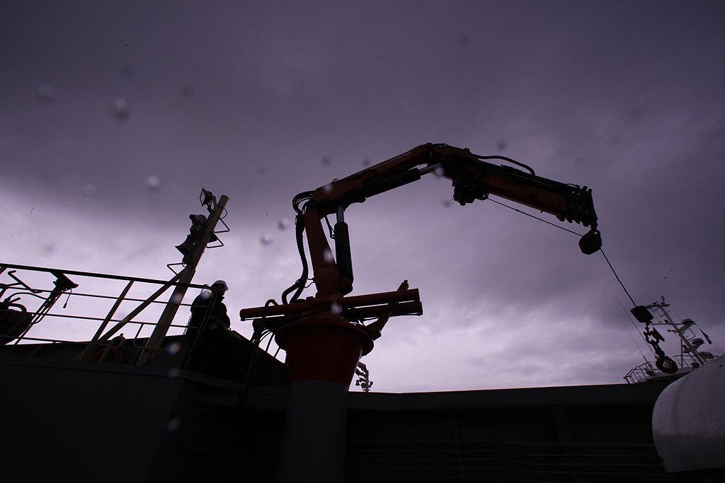 Вот подошла и наша очередь. Мы заехали на паром. Крановщик привёл кран в рабочее положение.