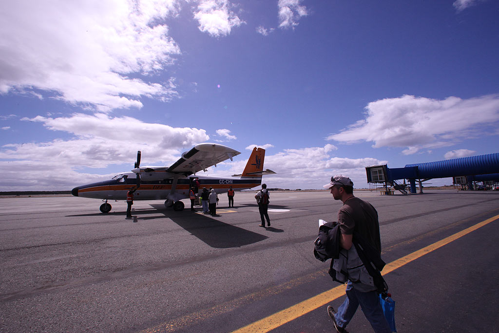 Разбег, взлёт. Короткий взгляд на аэропорт Пунта Аренас и самолёт меняет курс на восток.