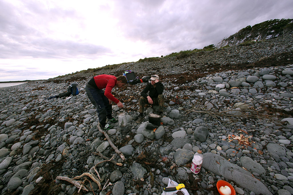 Утро, все ещё спят. Я схватил спининг и сбегал в устье речушки поблизости, сделать пару забросов на форель. Увы ничего. Вернулся в лагерь, развёл костёр, вскипятил воду на чай. Нашел хлеб и мясо оставшееся со вчера. На глаз прикинул что всего на завтрак достаточно. На шум моей возни у костра появилась Марина. Остальные спали как сурки. Пошел поднимать народ. Сегодня должен был быть напряжённый день. Нашей команде нужно будет перебраться в Порт Вильямс к Сесилии, закупить продукты на поход, договориться об оформлении разрешения на выход, договориться с представителем Ультрамара о разгрузке ящика с парома. В общем дел по горло.