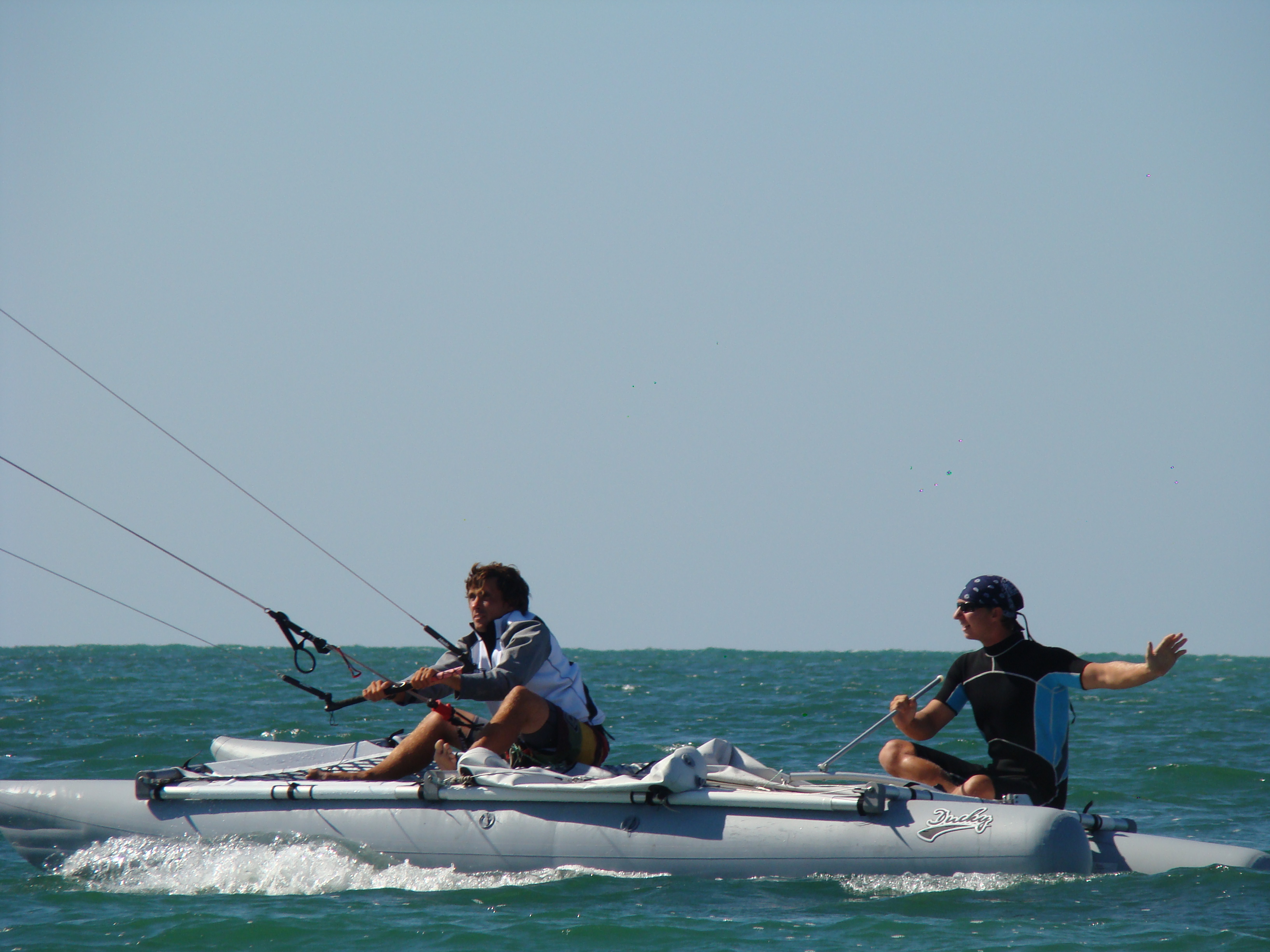 Еще очень сложно было переместить бушприт на ветер при работающем генакере - сила в парусе была уж очень большой. Потом еще оказалось, что бушприт-фал закусывался в направляющих передней балки, т.е. такое впечатление, что начинать нужно с выноса бушприта на ветер пока без нагрузки...