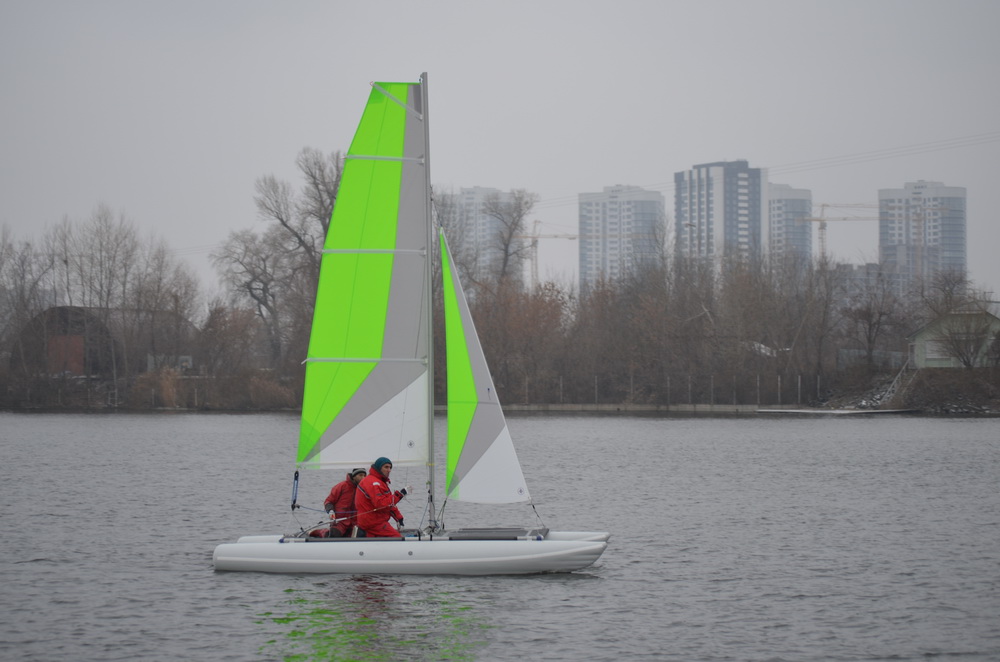 Всё, что выше 8-10 м/с уже само по себе серьёзное испытание для любой лодки. Пока, в такой ветер обкатать катамаран не представился случай, но есть уверенность, что всё будет хорошо. Аналогов с безгиковым гротом масса, как среди надувных, так и среди жёстких, в том числе и со спортивным уклоном. Это проверенное временем решение. В нашем случае, безгиковая конструкция даёт дополнительные плюсы в виде простоты и быстроты сборки, безопасности, что особенно важно для такой лодки. Поскольку лодку предполагается использовать преимущественно в пляжном варианте, всё что будет в ней сложно и долго будет убивать желание лишний раз захватить её с собой на пляж - человек ленив по своей природе.