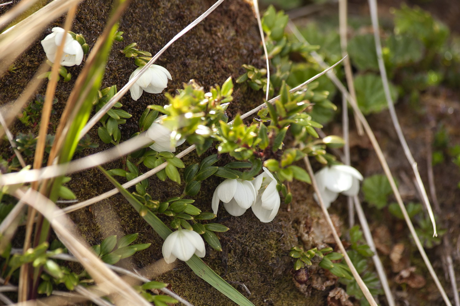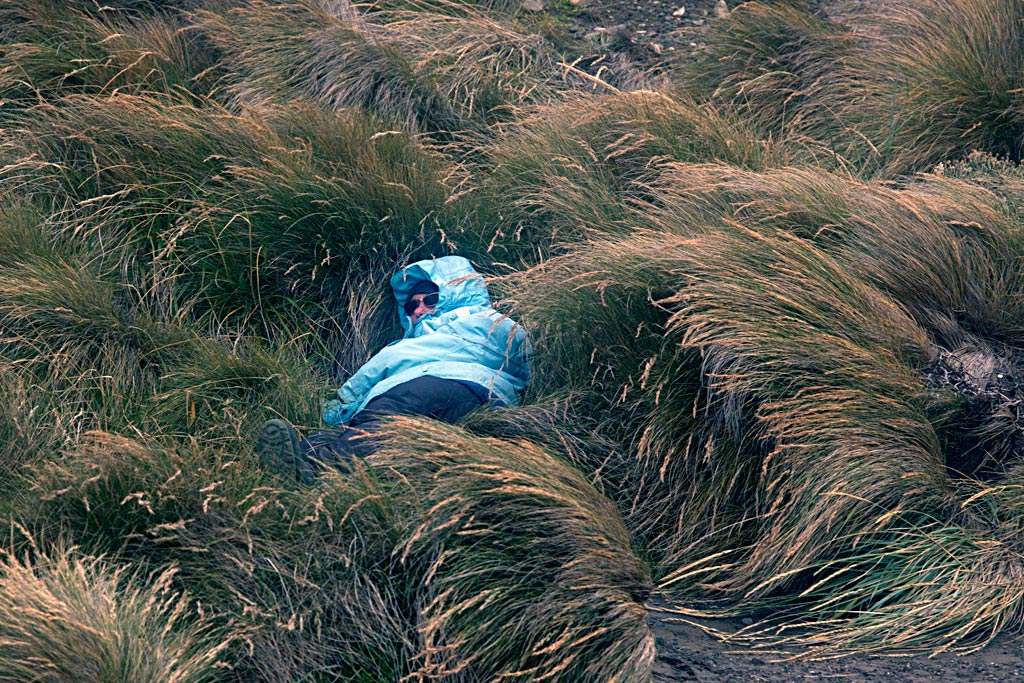 Фотографировать удавалось с трудом, ветром шатало, стабилизатор не справлялся. Ставить на штатив я боялся, чтобы не перевернуло вместе со штативом. : Женя опять перемещался используя естественные убежища, как по обстрелом. Марина "окопалась" в траве между кочками.